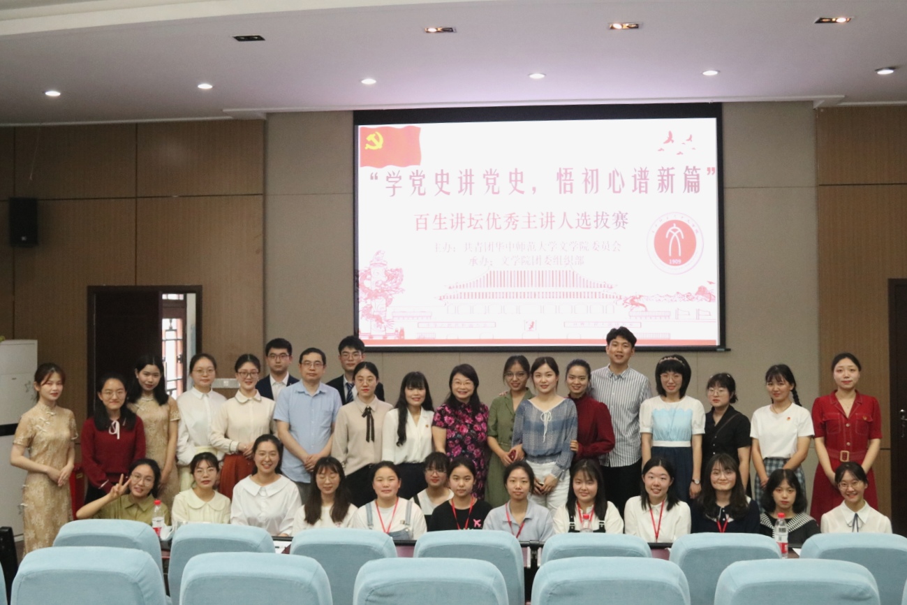 (通讯员 丁慧 唐艺卓 邹欣欣)5月9日上午,由共青团华中师范大学文学院委员会主办,文学院团委组织部承办的“理论学‘习’我来讲”——文学院“学党史讲党史,悟初心谱新篇”百生讲坛优秀主讲人选拔赛在文学院一楼报告厅举办。本次大赛邀请了马克思主义学院老师彭菊花,文学院老师邓天玉、黄甜甜担任评委,文学院团委书记李哲立、2019级辅导员陈若千、2020级辅导员马骁作为嘉宾出席了本次比赛。