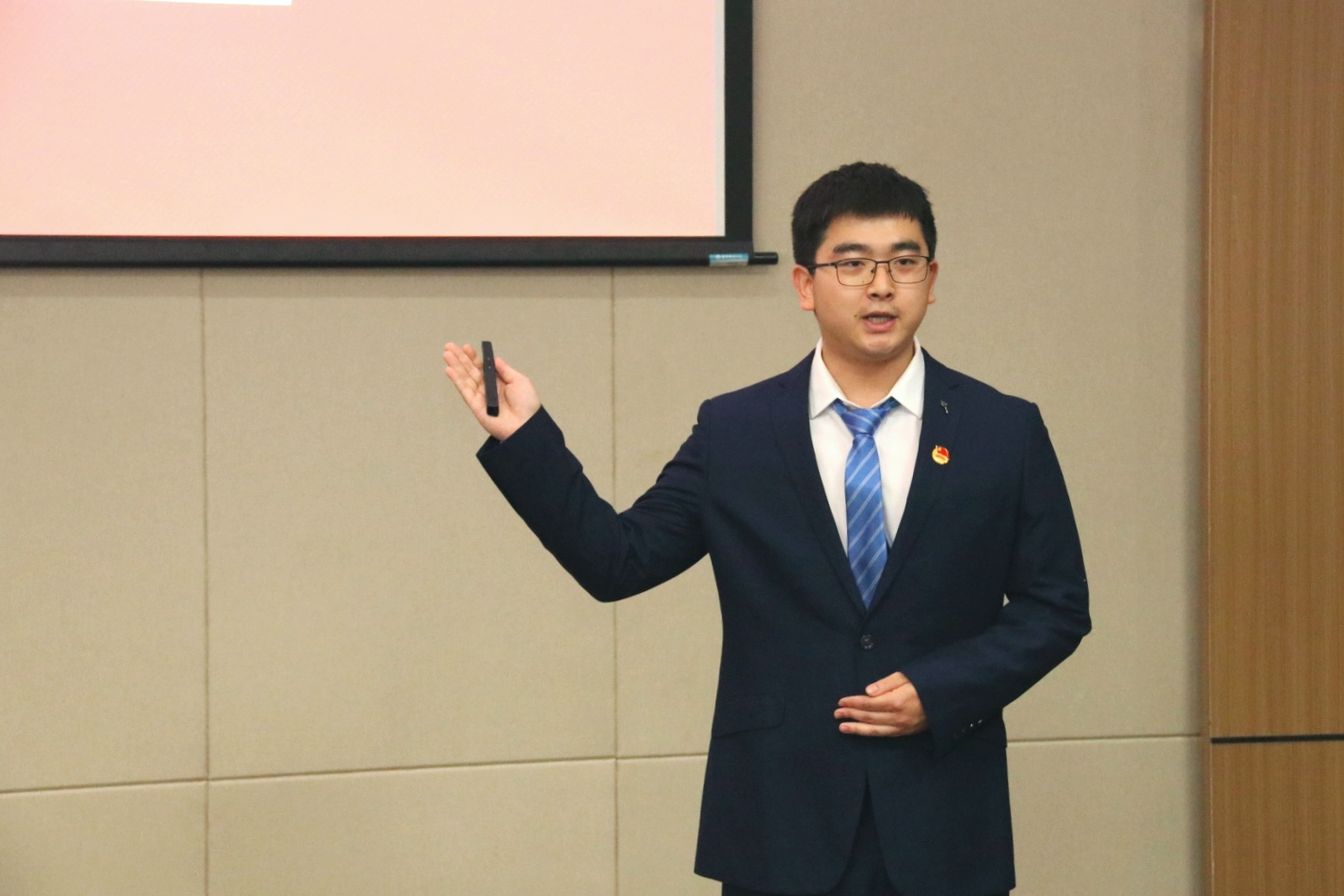 随后进行的是第二组比赛,来自2020级的选手李泽辰以《回顾百年党史,争做时代新青年》为题,以北伐战争、红军长征、抗日战争、新中国成立为主线,联系十九大精神提出新时代的我们更应该以青春之魂,传递十九大精神,使党的精神代代相传。来自2019级的选手周旺章以《风雨压不垮,苦难中开花》为题,讲述李文亮医生与张桂梅教师的事迹,展现出中国共产党的使命于时代征程中坚定,于时间浪潮中坚守不变的信念。第二组比赛结束后,评委黄甜甜老师对第二组选手的表现进行点评总结。其中,他对于本轮主讲人给予极大的肯定,提出将演讲的内容联系实际结合自身才能使演讲更具形象化,以及结尾部分的升华需更加流畅自然等注意事项。