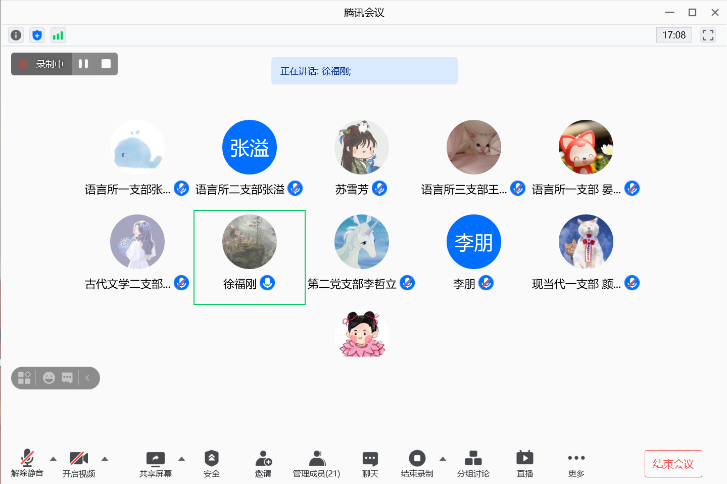 (通讯员 段佳璇 万铭汐)7月7日16时,华中师范大学文学院党委召开线上党史学习教育专题组织生活会动员大会,此次会议由文学院党委副书记徐福刚主持,23名党支部书记参会。