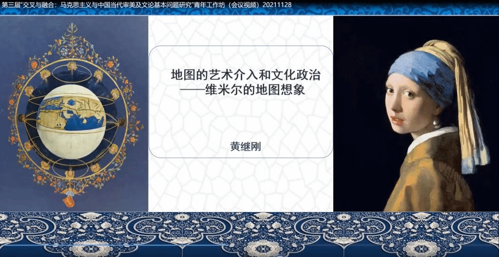 第三位主讲人黄继刚(汕头大学)的发言主题为《地图的艺术介入和文化政治——维米尔的地图想象》。他将主要在地理学意义上呈现的地图从艺术角度加以观照,并且与文化政治关联,呈现了跨学科的尝试和探索。在随后的讨论中,付林鹏(华中师范大学)和刘涛(华中师范大学)分别从古代文学研究和文化政治研究的角度对这一话题提出了不尽相同的研究设想,黄继刚教授也对此做出了现场回应。