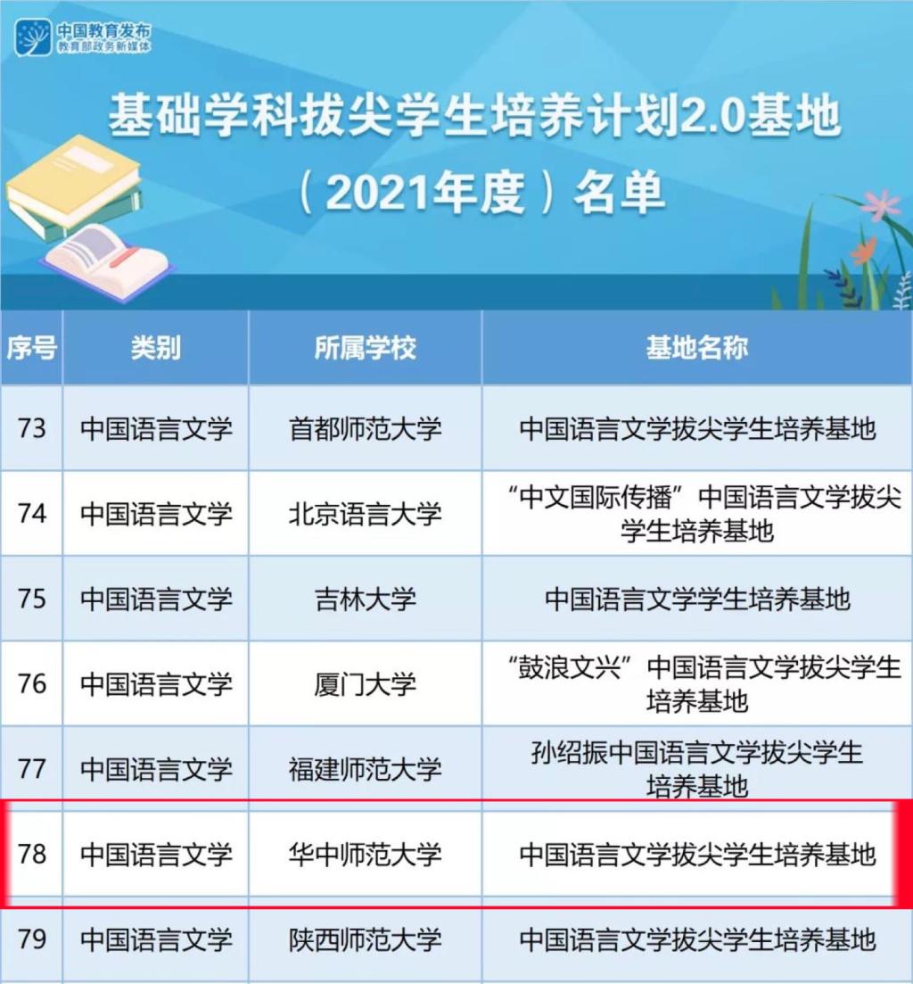 近日,教育部公布基础学科拔尖学生培养计划2.0基地(2021年度)名单。我院中国语言文学拔尖学生培养基地成功入选。