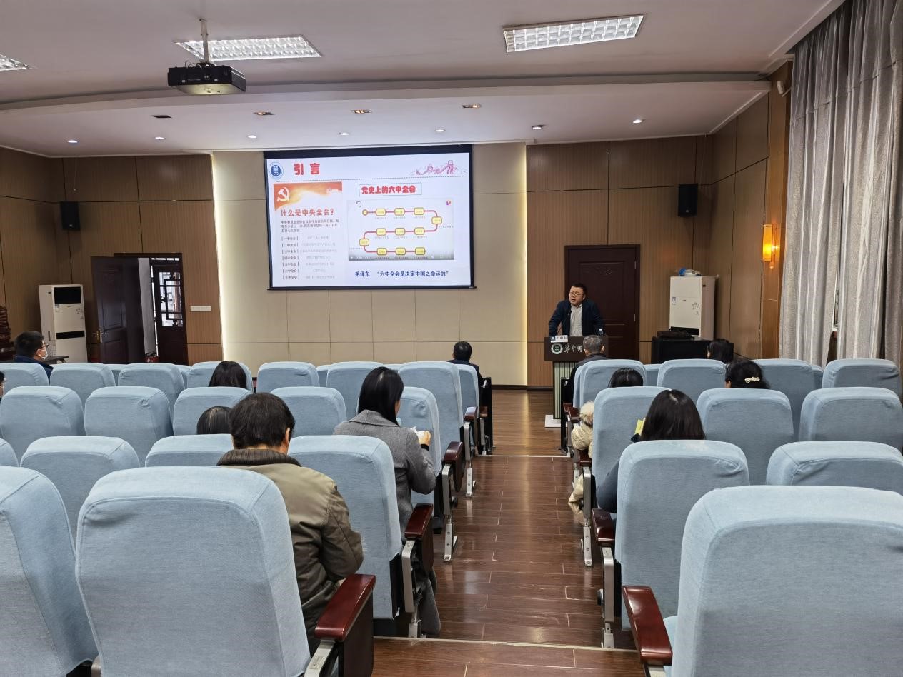 吕惠东老师将此次专题学习会命名为“以史为鉴,向新而行”,他指出,十九届六中全会是在建党百年之际,在世界百年未有之大变局中,召开的旨在汲取党的历史成就、经验和智慧,以凝聚起全党民族力量的大会。在带领大家解读了此次全会涉及的关键词后,吕老师与大家共同回顾党史上的六中全会,概括了历次会议的主要内容。介绍十九届六中全会主要议程的同时,吕老师罗列了一些需重点关注和学习的参考文献,为大家会后自学提供了明确的方向。