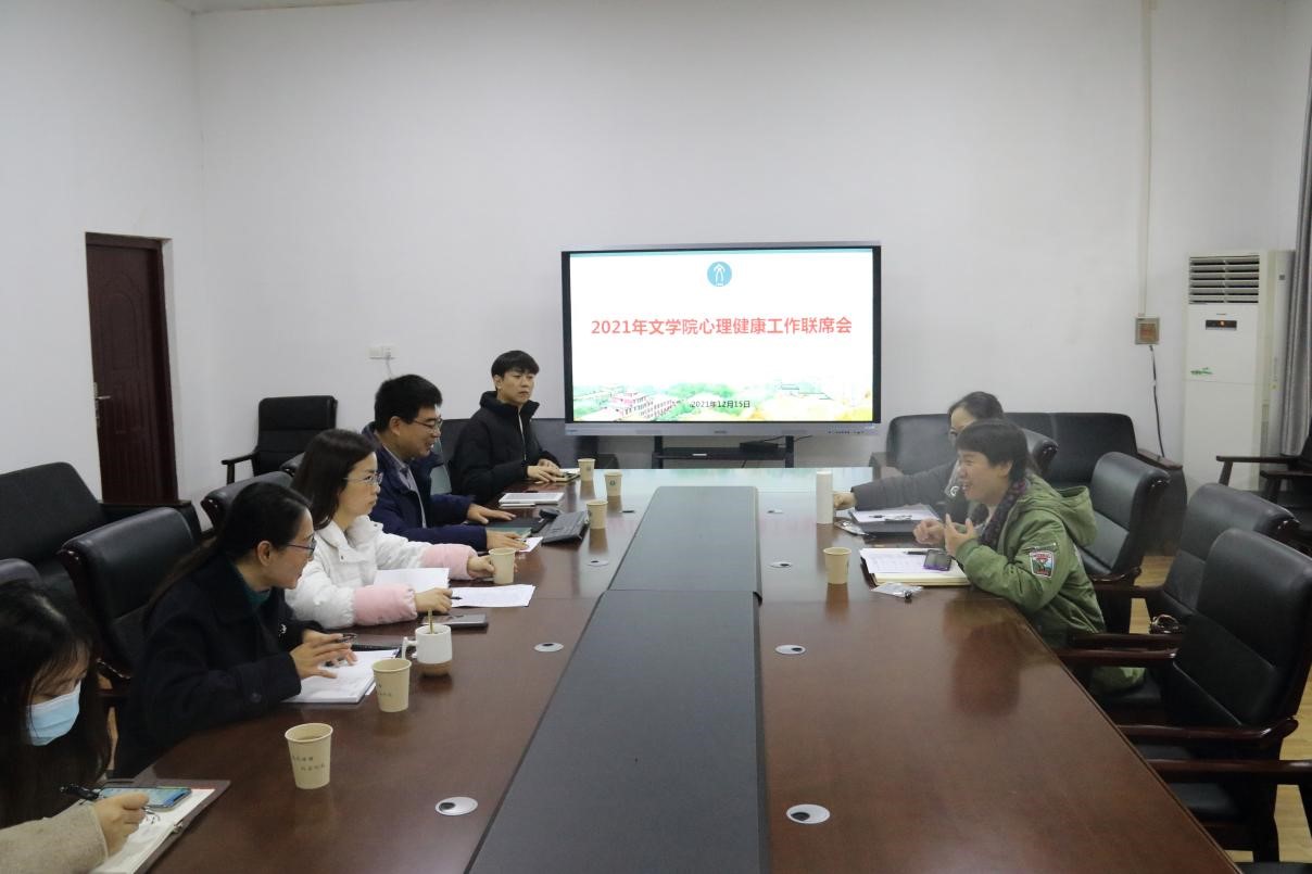 为切实做好我院学生心理健康教育、危机干预工作,加强学院与学校心理健康教育中心的合作,提升政工队伍对心理危机的识别和干预能力,12月15日上午,文学院2021年心理健康工作联席会在我院三楼会议室举行。校党委学生工作部副处长吴建成,学校大学生心理健康教育中心专职教师段文婷、文学院党委副书记徐福刚及学院本研专兼职辅导员参加会议。会议由徐福刚主持。