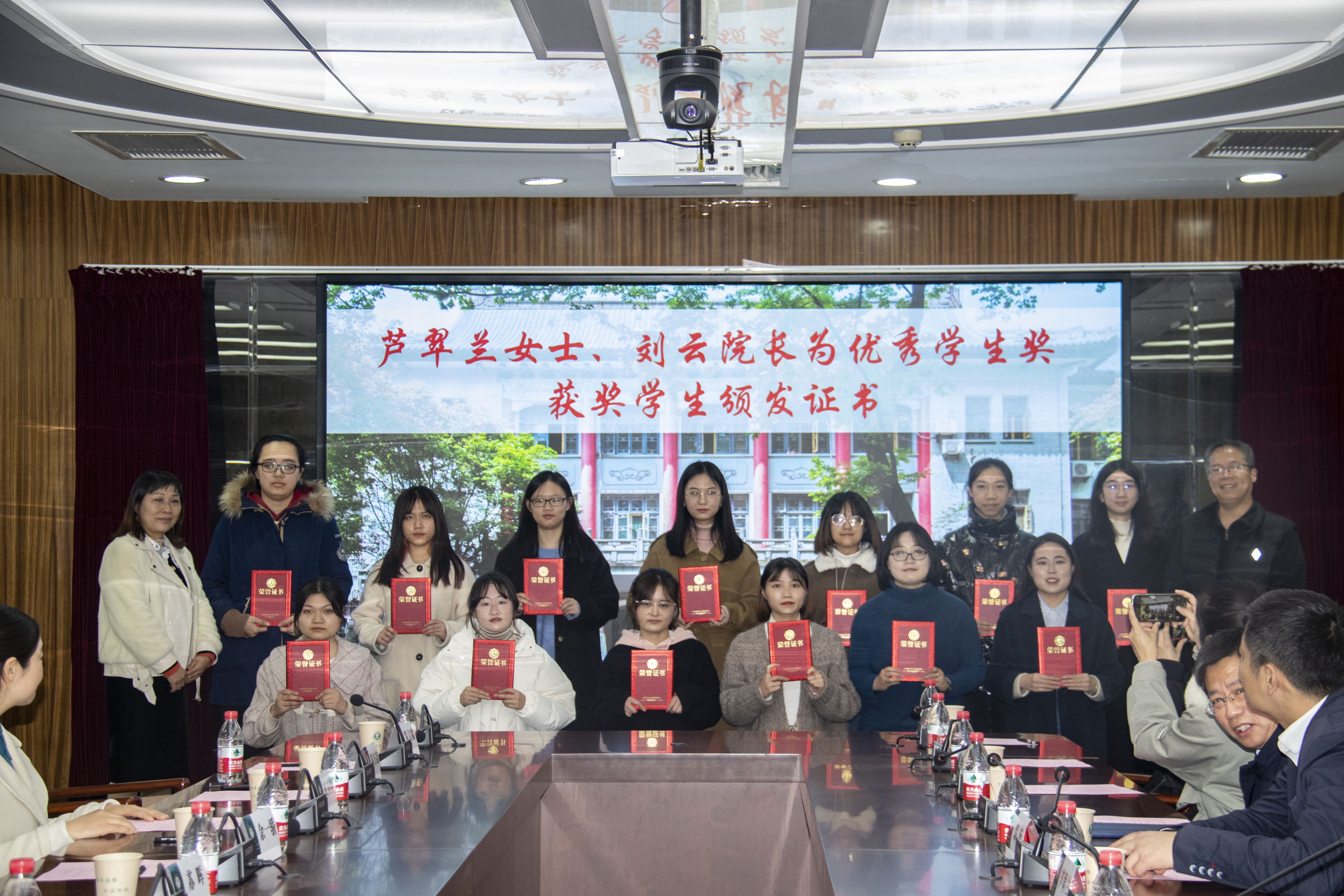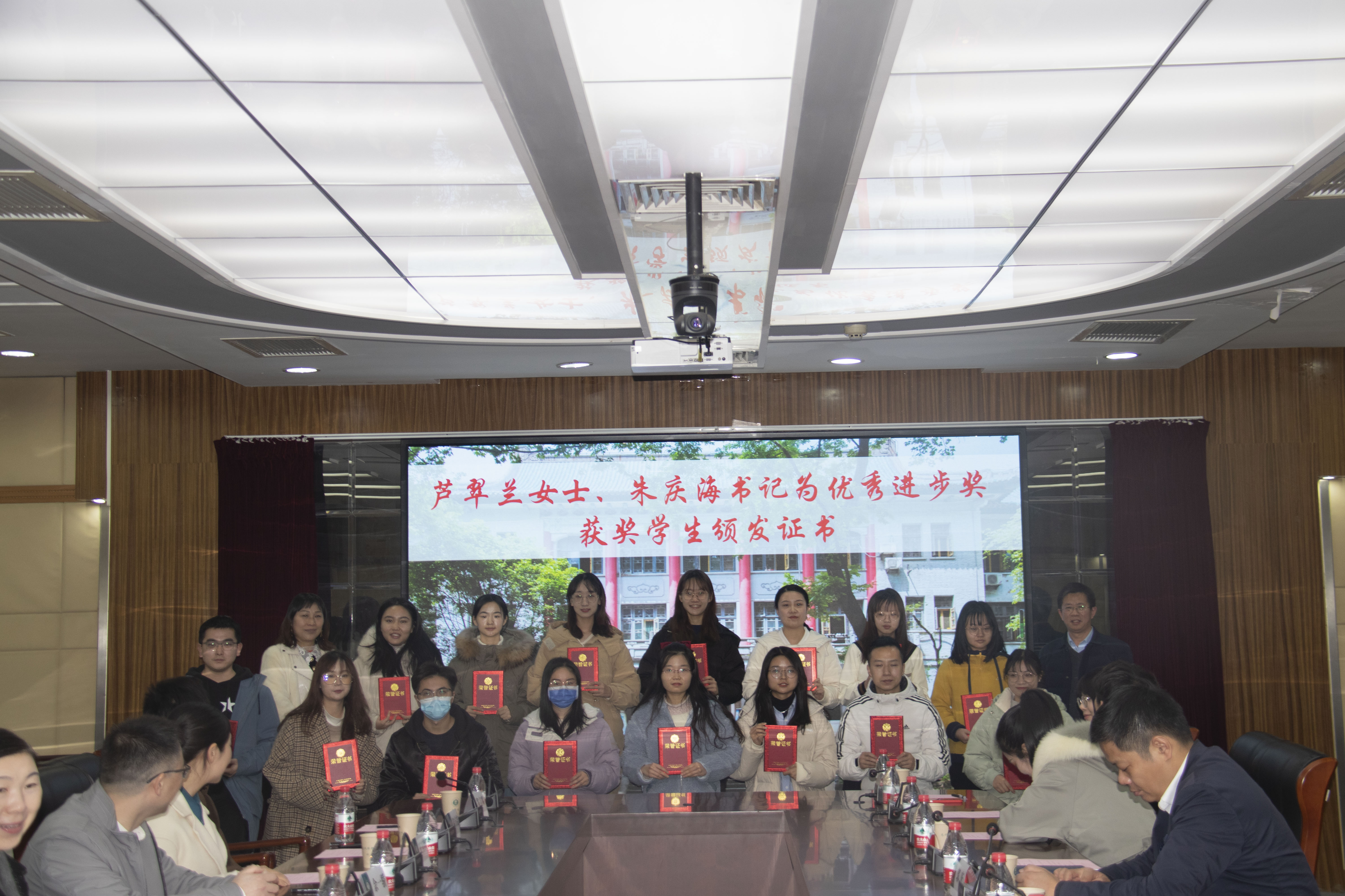颁奖环节,朱庆海宣读了《文学院关于表彰2021年“益利乐生”奖教学金获奖师生的决定》。随后,芦翠兰、朱庆海为“优秀进步奖”获奖学生颁发证书,芦翠兰、刘云为“优秀学生奖”获奖学生颁发证书,芦翠兰、郭庆为获奖教师颁发证书。
