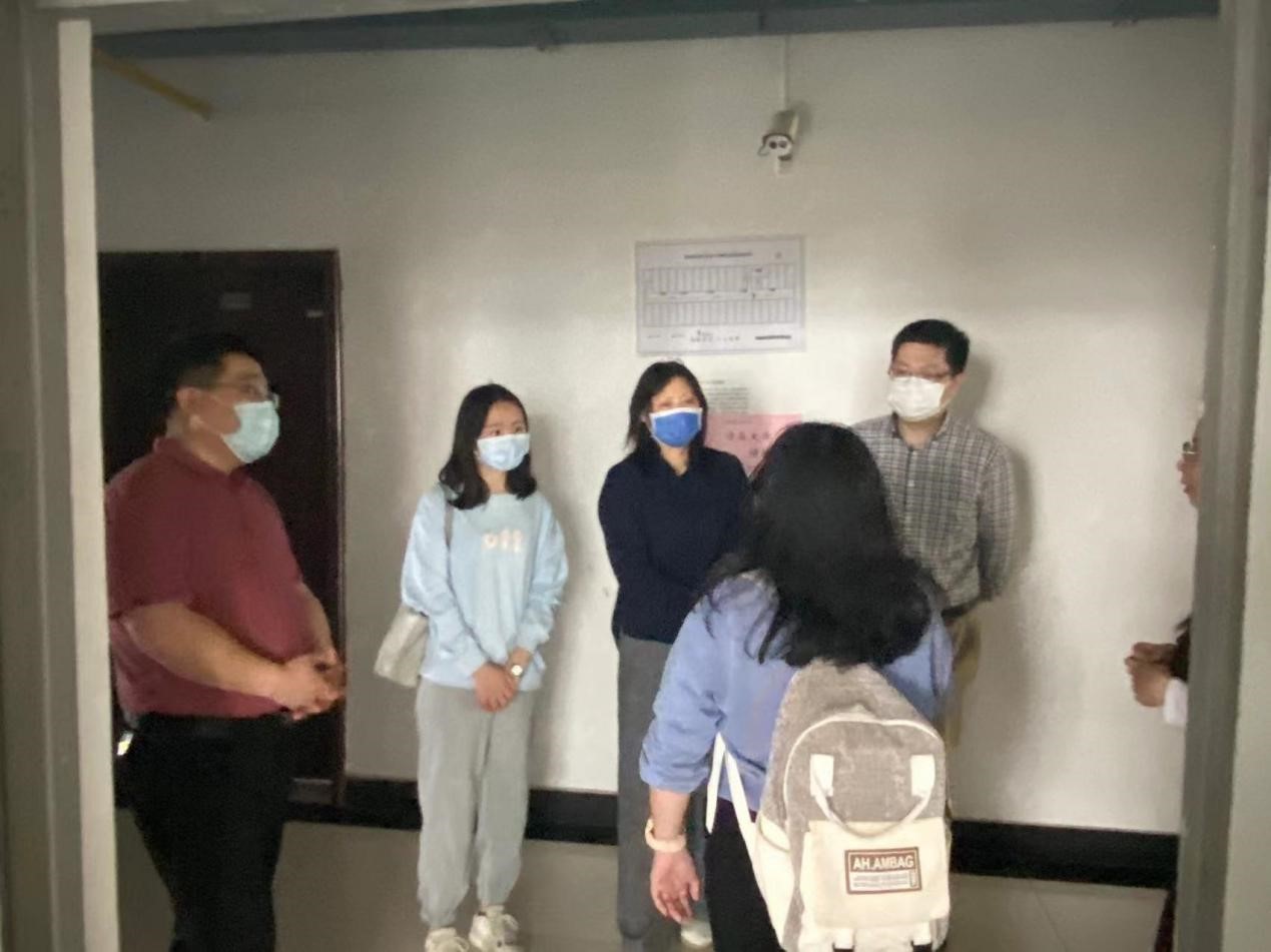 走访期间,学院领导、老师与同学们进行了亲切交流,详细了解同学们疫情防控期间的学习、论文撰写、就业、日常生活等情况,并叮嘱同学们要严格遵守疫情防控期间学校的各项管理规定,非必要不出校,需要跨校区上课的同学务必严格做到两点一线;同时要认真做好个人防护和自我管理,养成良好的生活卫生习惯,按时参加学校组织的核酸检测,加强身体锻炼,注意身体健康,保持积极向上的好心态,遇到困难和问题及时向学院反馈;大家一起努力,共同营造健康安全有序的良好校园环境。