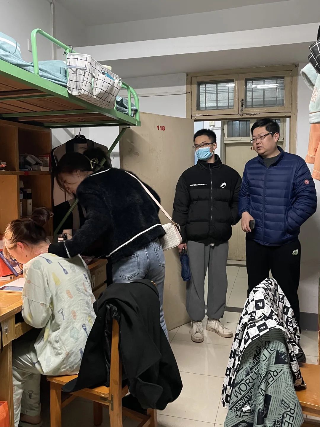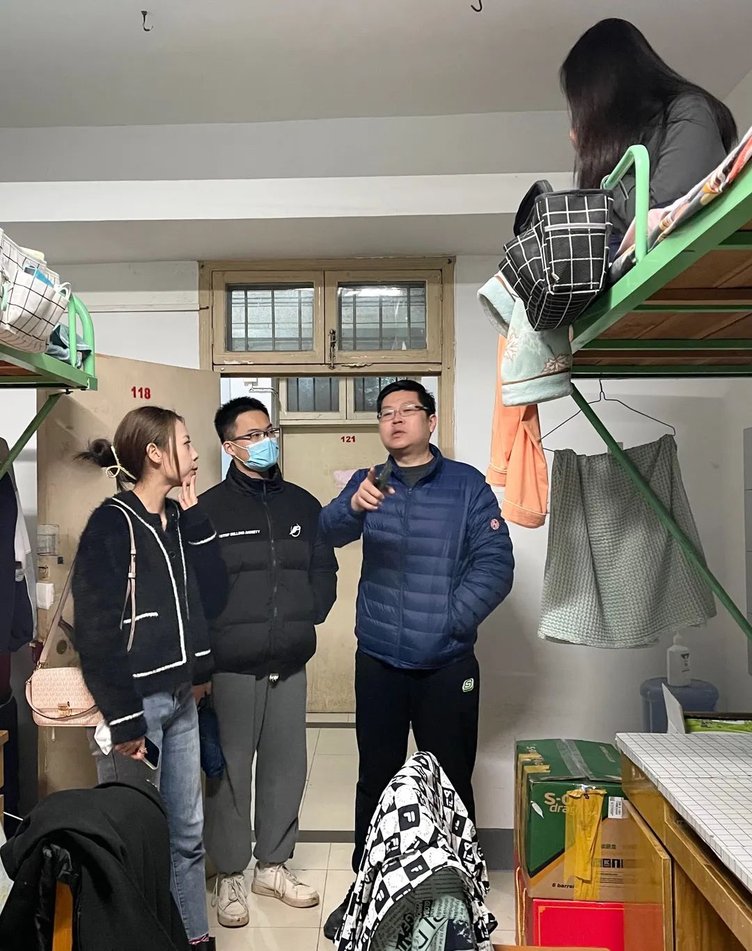 走访期间,学院领导、老师与同学们进行了亲切交流,详细了解同学们近期的学习、日常生活、疫情防控等情况,并叮嘱同学们要严格遵守疫情防控期间学校的各项管理规定,按时参加学校组织的核酸检测;同时要健康饮食,积极加强身体锻炼,保持乐观向上的好心态;特别要注意增强安全意识,注意防盗防诈骗及寝室用电安全。