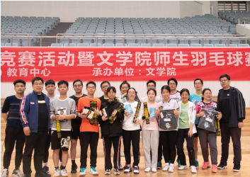 至此,本次“师生杯”羽毛球赛落下帷幕。师生携手比赛,既能加强彼此的沟通与交流,又能激发运动热情、提高身体素质,培养团结协作的运动精神。文学院旨在以一场场比赛为支点,营造热爱体育运动的良好氛围,更期望以此次活动为先导,为华师体育事业添姿加彩。