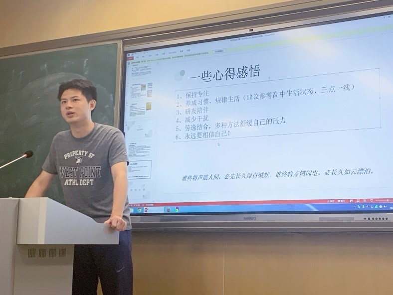 陆方喆对这次交流会进行总结,他对即将毕业的6位分享人表示感谢和祝福,也寄望2019和2020级的同学从本次交流中得到宝贵的经验和启示,在今后的学习和生活中实现自己的理想。至此,本次交流会结束。