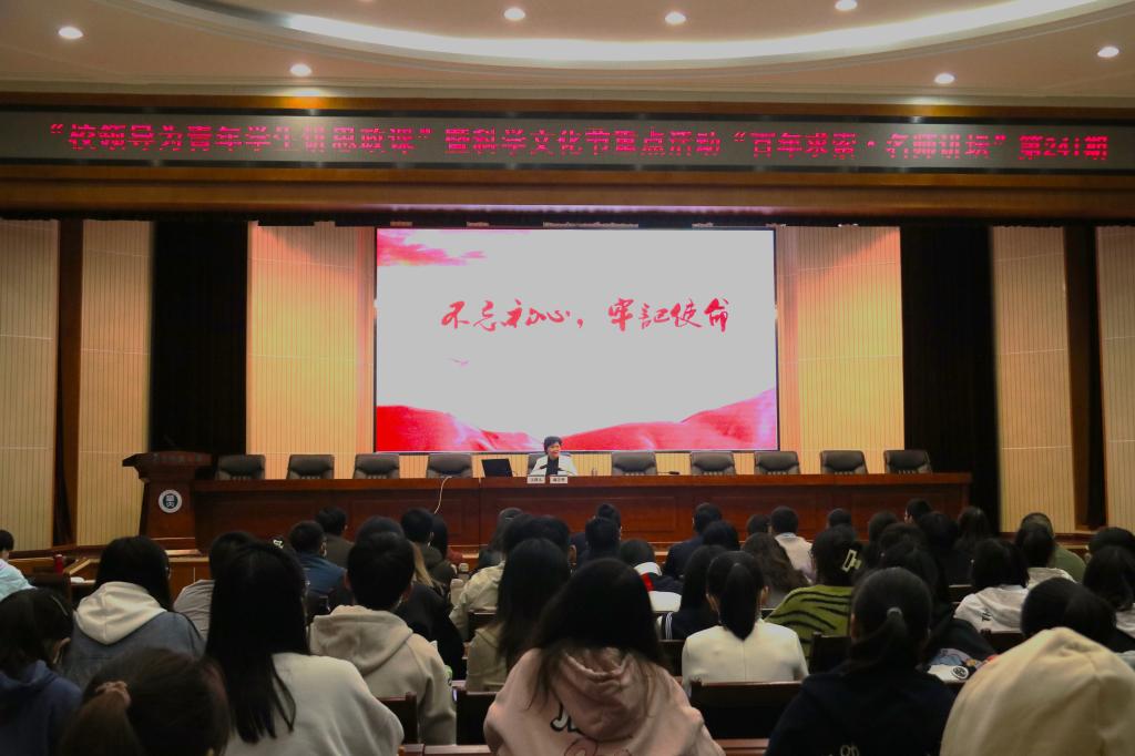 随后,郝芳华校长展开“校领导为青年讲思政课”暨科学文化节重点活动“百年求索·名师讲堂”第241期主题讲座。郝校长以“以习近平生态文明思想引领美丽中国建设”为主题,从习近平生态文明思想及双碳战略规划讲述对美丽中国建设的期待。郝校长详细介绍了习近平生态文明思想的发展历程、主要内涵、重大意义、鲜明特色。接着,郝校长从双碳战略的时代担当出发,介绍了双碳目标面临的巨大挑战,并着重强调了双碳人才的培养目标。