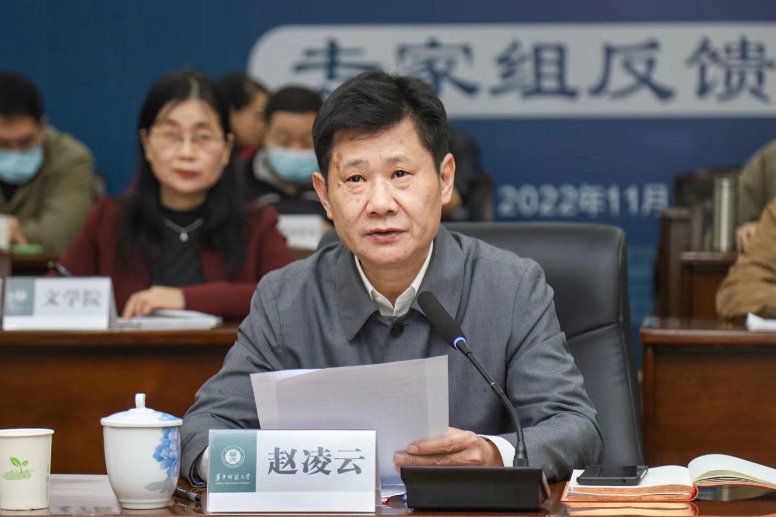 赵凌云在发言讲话中指出,认证专家组提出的反馈意见和建议非常精准,严肃严谨、客观中肯,具有很强的针对性和指导性,符合专业实际,学校完全接受专家组反馈意见。前不久,党的二十大胜利召开,开启了中国式现代化建设的新征程。学校将以此次考查和整改为契机,推进实施我校刚刚研究制订出台的《新时代基础教育强师计划实施方案》,全面提高师范人才自主培养质量,构建学校、学院、专业三级共创共建格局。学校及相关部门要担当专业建设的主导责任,在专业办学方向、育人标准、拓展外部协同等方面增强保障;学院要担当专业建设的主体责任,进一步优化育人目标、评价体系、培养体系、质量监督保障体系等;专业团队要担当改进和建设的落实责任,根据学校部署和学院安排,在学生发展、队伍建设、课程建设、实习实训等方面下大功夫,努力担当新时代师范大学的使命,把我校师范类专业建好、建优、建强。