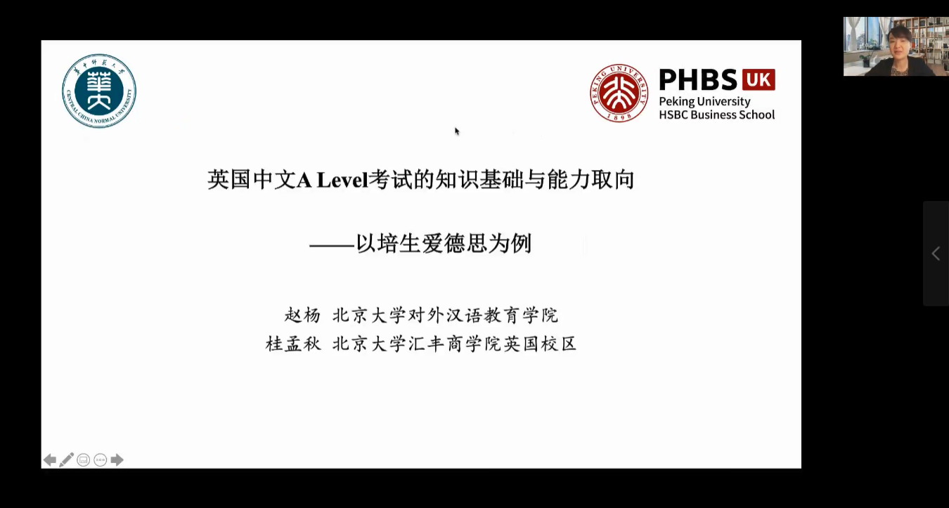 (通讯员 陈红)2022年12月2日晚19:00,由华中师范大学文学院“汉语国际教育与传播研究”青年学术创新团队精心筹办的“后疫情时代的国际中文教育与传播”系列在线论坛第十二场顺利举办。北京大学汇丰商学院英国校区中文项目负责人桂孟秋主任应邀担任主讲嘉宾,作了主题为《英国中文A Level考试的知识基础与能力取向——以培生爱德思为例》的学术讲座,文学院副教授陆方喆老师主持了此次讲座。