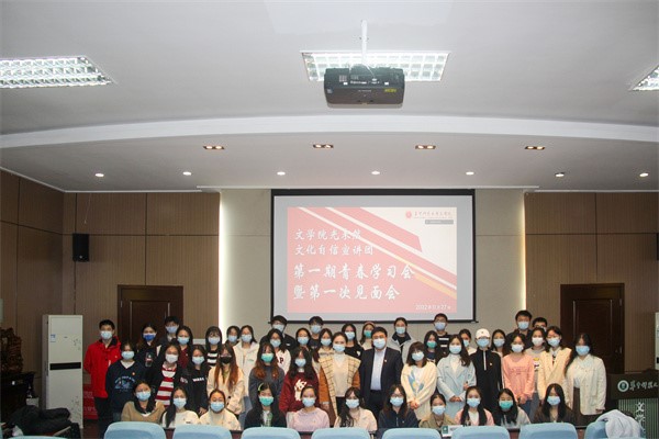 (通讯员 陈知行 张棋琪 邹秦丹)为深入学习宣传贯彻党的二十大精神,提高站位、强化认识,11月27日下午,文学院光未然文化自信宣讲团(以下简称“宣讲团”)2022年第一期“青春学习会”在文学院一楼报告厅举行。此次活动由华中师范大学第十三届校团委副书记(学生)、全国青年马克思主义者培养工程学员陈凌继霄担任主讲人,文学院团委书记、宣讲团指导老师倪菁主持,宣讲团全体成员及文学院20级、21级全体团支书参与学习。