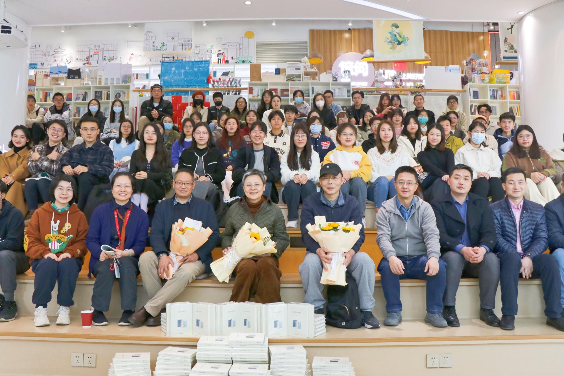 交流会最后,对谈嘉宾与大家合影留念。在签售中,现场听众排起长队,请作者在书籍扉页上写下寄语。至此,本次新书交流会结束。摇篮文学社第41届社长、文学院20级学生朴直表示:“本次交流会的参与者不仅有社员与文学院学生,还有来自校内外其他院系的朋友,以及来自广东的、正在华师进修的老师们。交流会不仅增强了作者与读者的沟通与联系,还拉近了当下文学创作现场与现实日常生活场景之间的距离。希望日后摇篮文学社能继续参与策划此类活动,推动校园文学的发展。”