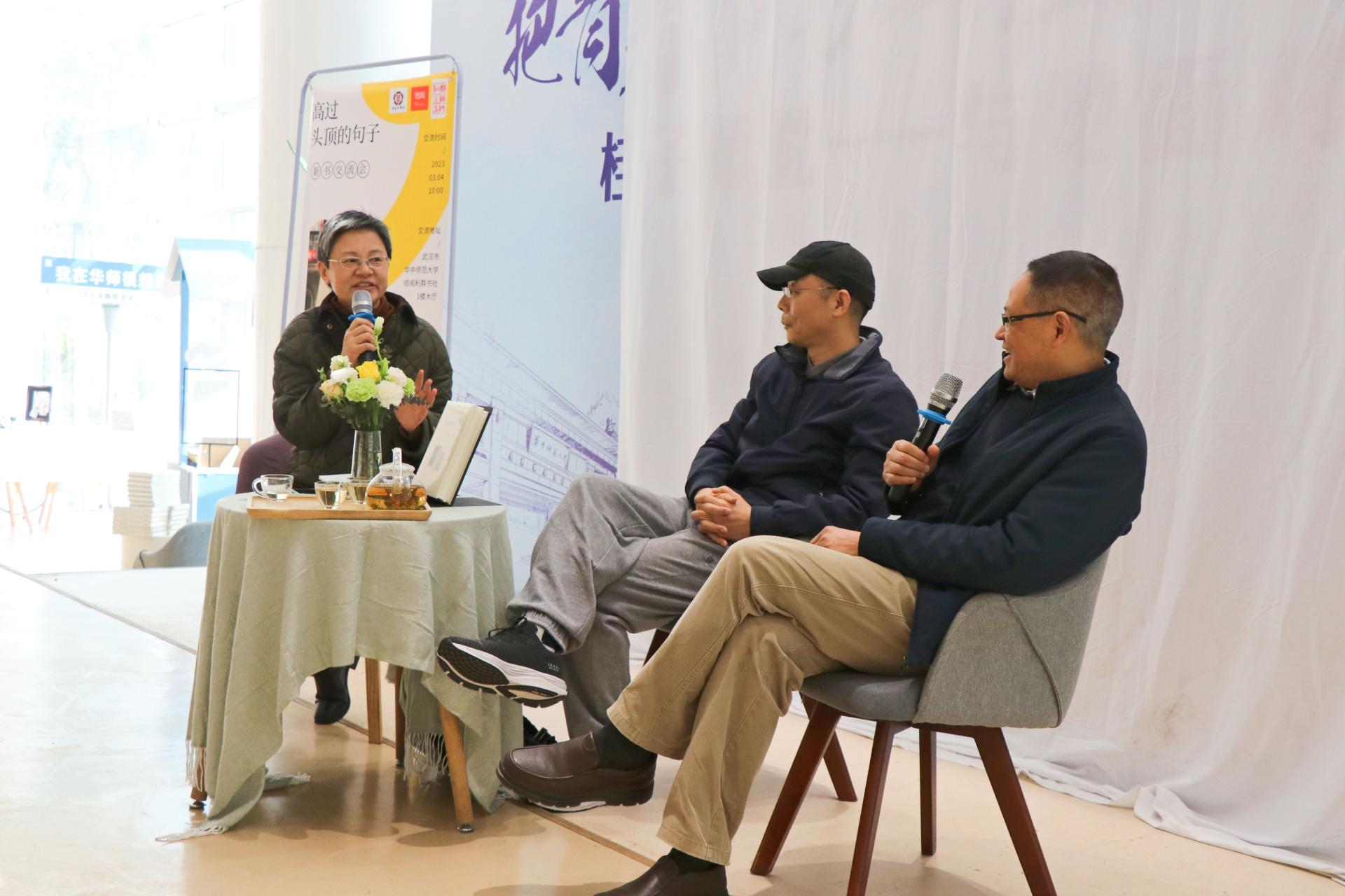 3月4日上午,由华中师范大学摇篮文学社(学生)联合湖北省新华书店(集团)倍阅利群店、华中师范大学寒梅诗社(学生)主办的《高过头顶的句子》新书交流会于倍阅利群书社一楼大厅举行。该书作者魏天无老师与诗人、作家剑男,学者、评论家魏天真两位老师围绕新书内容进行对谈,三位老师是中文系84级同学。摇篮文学社、寒梅诗社社员及热心读者共百余人参与交流会。