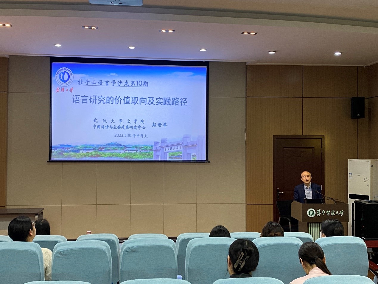 (通讯员 官晓碧)5月10日16:00,武汉大学教授、国家语委咨询委员赵世举做客桂子山语言学沙龙,在文学院一楼报告厅为师生带来主题为“语言研究的价值取向与实践路径”的学术讲座。本次讲座由华中师范大学文学院陆方喆副教授主持,文学院王洪涌副院长、青年教师肖俊敏博士参与。