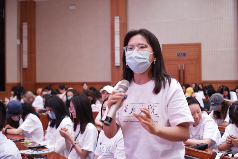 在提问互动环节,同学们结合自身经历踊跃提问,陈蓓针对“一线教师如何保持教育热情”“如何应对考研失利”等问题都给予了详细解答,她鼓励2023届毕业生们注重过程、做好选择、转变思维,在人生道路上努力绽放属于自己的光彩。