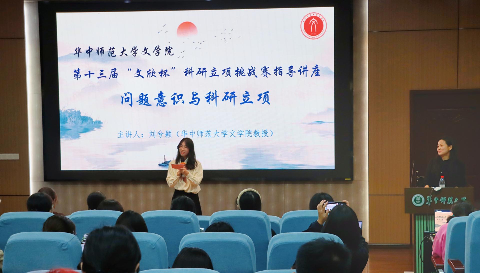 (通讯员 潘叶 侯卓)10月13日晚,第十三届“文欣杯”科研立项挑战赛指导讲座于文学院一楼报告厅举行。本次活动由共青团华中师范大学文学院委员会主办,文学院团委学生会学术创新与劳育中心承办,特别邀请到华中师范大学文学院教授、文学博士、《外国文学研究》杂志编辑部主任刘兮颖作为主讲人。活动旨在为学生科研立项指点迷津,激发学生对科研的兴趣,助力热爱科研的学生在竞赛的舞台上大放异彩。