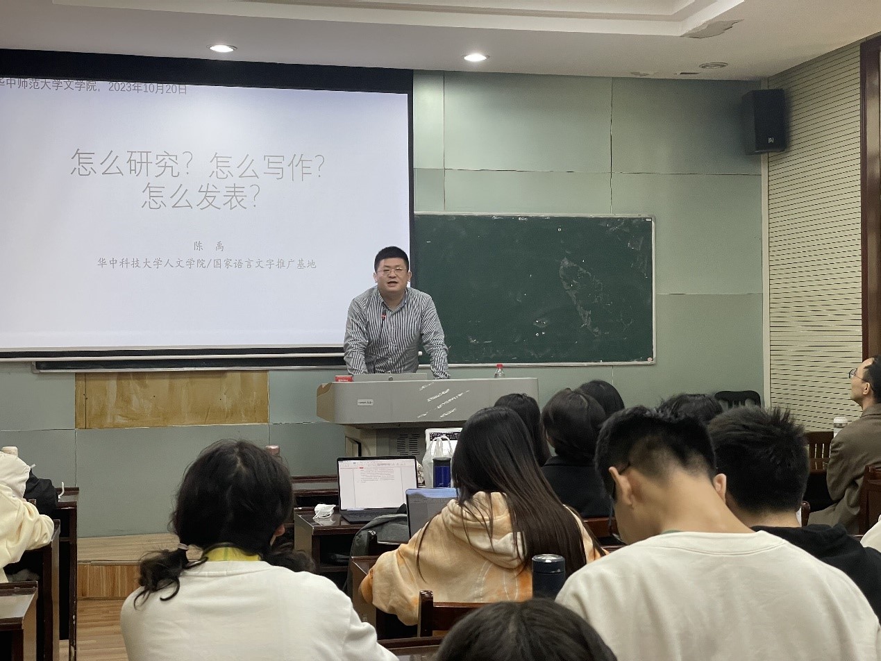 (通讯员 申昕瑶)十月二十日下午,“桂子山语言学沙龙”第十二期在华中师范大学文学院317教室成功举办。华中科技大学副教授陈禹应邀作了主题为“怎么做研究?怎么写论文?怎么去投稿?”的讲座。此次讲座由文学院陆方喆老师主持,语言所刘彬老师、我院语言学专业本科生以及研究生约70余人参加了讲座。