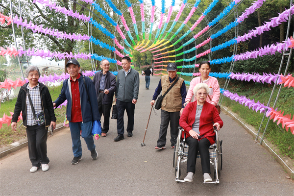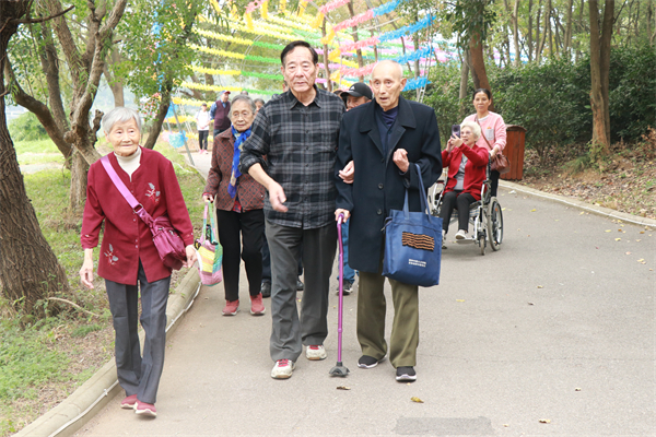 (通讯员魏珍妮)恰似秋意浓,晚霞满人间。10月25日,文学院组织退休教师赴蔡甸金龙水寨生态乐园开展秋游活动,共有30多人参加。本次活动在“敬老月”期间举办,旨在促进离退休教师放松身心、欢聚交流,发扬尊老、敬老、爱老的优良传统。朱宗尧老师以93岁高龄杵着拐杖、黄赛琴老师坐着轮椅全程参加。文学院分党委书记张舜、离退休支部书记高景、校离退休处刘旭平等老师全程陪同。