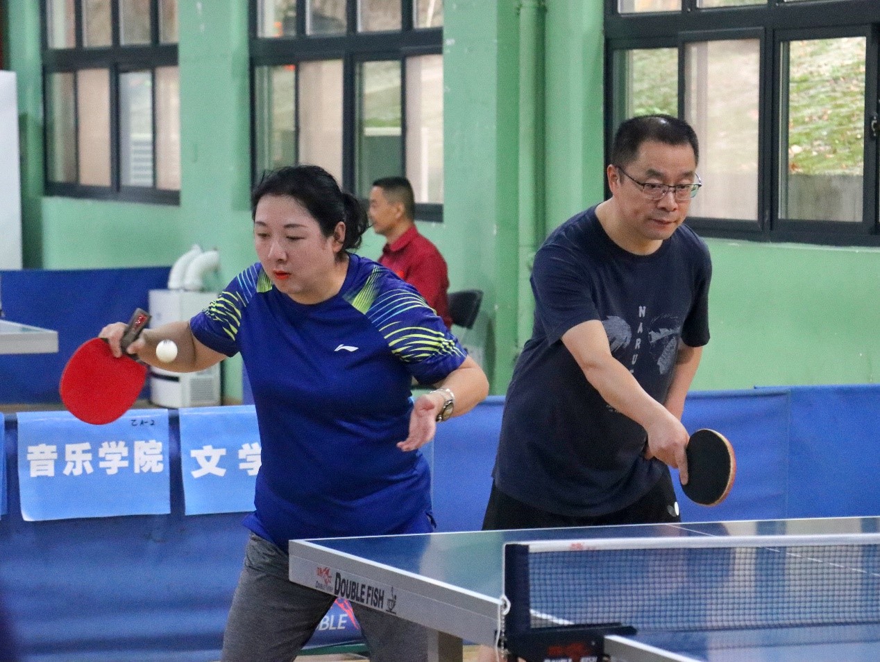 与音乐学院的比拼中,先是由刘彬和饶琪默契配合,取得开门红;第二局,罗耀华出战男单,经过一番紧张的拉锯战后获胜;第三局女单,徐香莲对阵音乐学院徐晴,进一步把比赛推向高潮;第四局,韩维志联手高景以过硬实力拿下混双胜利;最后李程和王海龙面对劲敌,顶住压力,以2:1的成绩结束比赛。最终,文学院以10:5的总成绩战胜音乐学院,再次晋级。