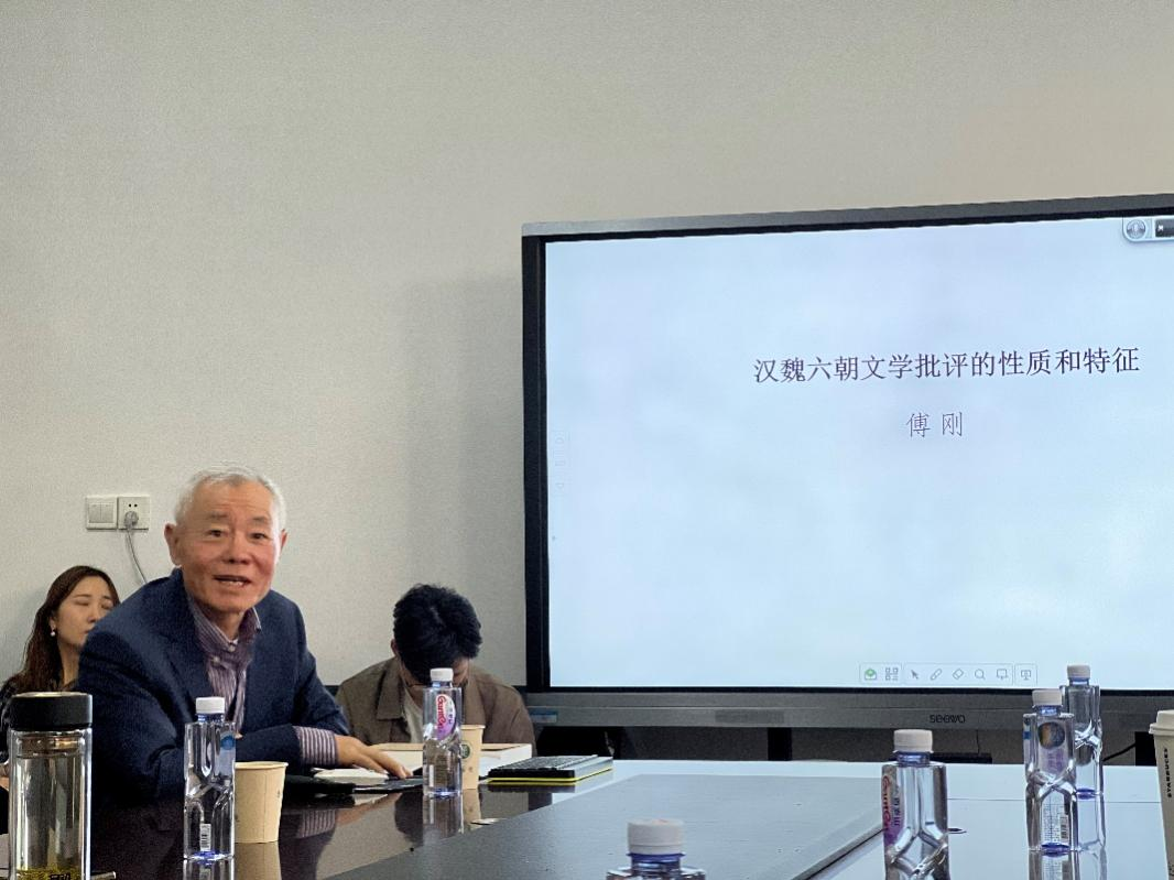(通讯员:佟子璇)10月30日下午北京大学中文系特聘教授、博士生导师、《中国文选》学研究会会长傅刚教授应邀做客桂子山人文论坛,在文学院三楼会议室带来主题为“汉魏六朝文学批评的性质和特征”的学术讲座。讲座由华中师范大学文学院林岩教授主持,中国屈原学会名誉会长、湖北省社科院楚辞研究所原所长毛庆,华中师范大学文学院付林鹏、罗昌繁、李程、苏小露、卜兴蕾、王楚及武汉大学文学院钟志辉、沈相辉等老师和众多学生聆听了讲座。