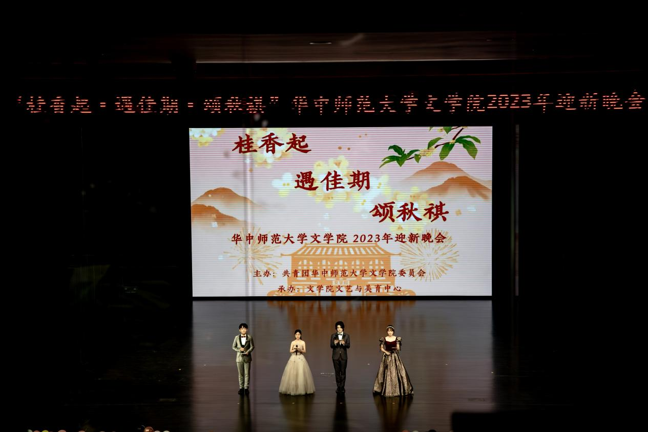 (通讯员 洪亚琳 徐榕微 宁静波)11月10日晚,华中师范大学文学院2023年迎新晚会在大学生活动中心礼堂举办。文学院党委副书记李红雷、桂文亮,文学院教授余祖坤、各年级辅导员及班主任助理等参加晚会。