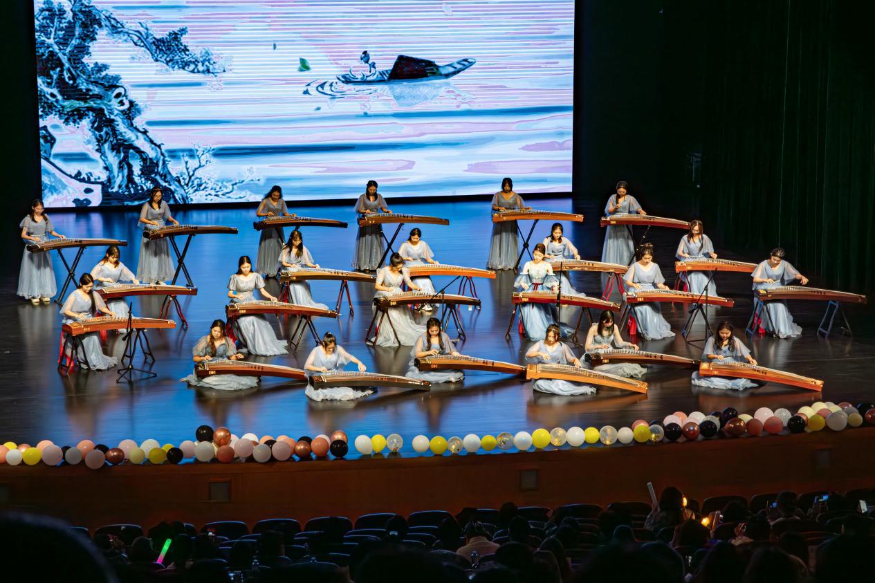 晚会由文学院团委主办,文学院团委学生会文艺与美育中心承办,以“桂香起·遇佳期·颂秋祺”为主题,庆祝桂香送佳期、遇新人、启新程。文学院辅导员李哲立带领筝乐团演奏的古典乐曲舒缓悠扬、赏心悦目,为晚会拉开序幕。