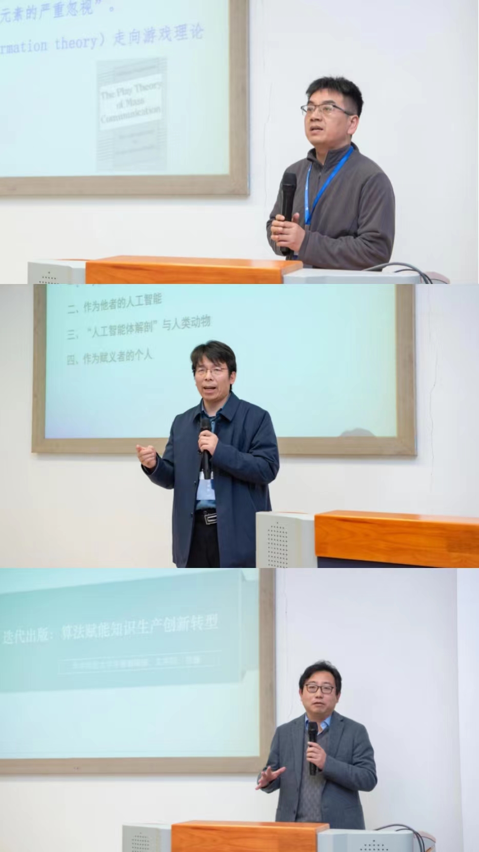 第三组主题发言由华中师范大学文学院教授杜娟主持。华中师范大学文学院教授黎杨全以数字时代文学的游戏批评范式为主题展开论述,华中师范大学马克思主义学院教授王世鹏探讨了人工智能哲学视域中“人的本质”的观念变革,华中师范大学学报副主编、编审曾巍围绕迭代出版,阐述了算法如何赋能知识生产的创新转型。