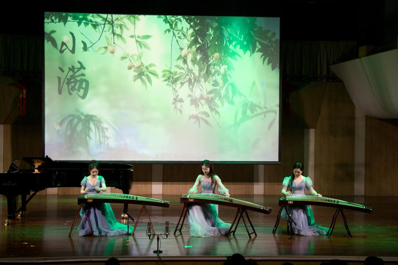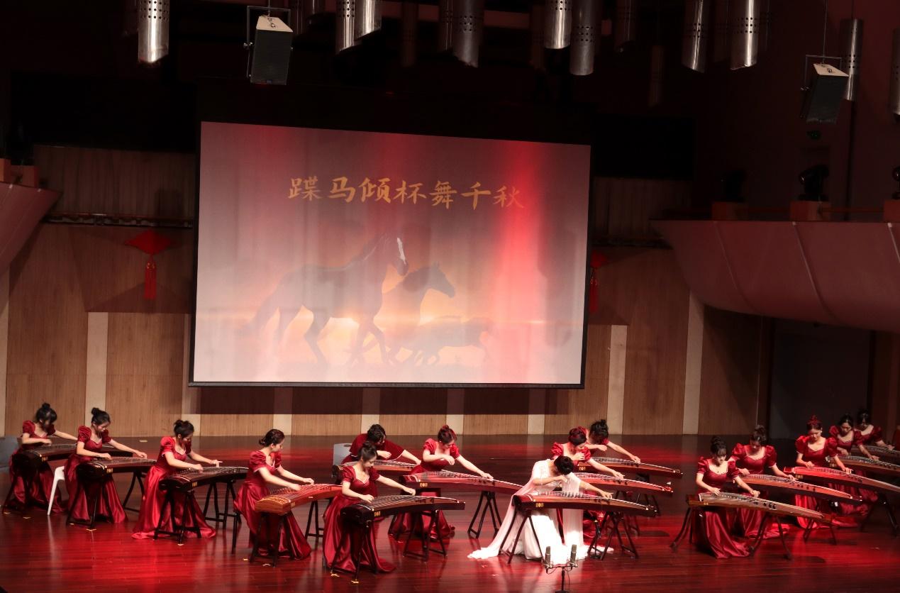 《小满》于高古之音、空灵之声中生发出人生小满、不自满、知不足的中庸之道。如若说《赤壁怀古》是牵引听众随苏轼触景生情,感人生无常、岁月不居,于凄婉深处生发雄壮。那么《定风波》便是于穿林打叶声中感其豁达超脱的人生态度。急奏转飞蓬,鼓声铿锵,琴声高昂,是风雨骤起。慢弹回断雁,鼓声沉沉,琴声悠扬,是料峭春风拂面,荡涤人心,笑看人世间。《蹀马倾杯舞千秋》让听众彷佛置身万马奔腾、倾杯乐起的盛世极景,映照出国泰民安的美好愿景,听众心中亦奔涌着豪情万丈,音乐会便在这琴声悠扬、心潮澎湃中走向尾声。