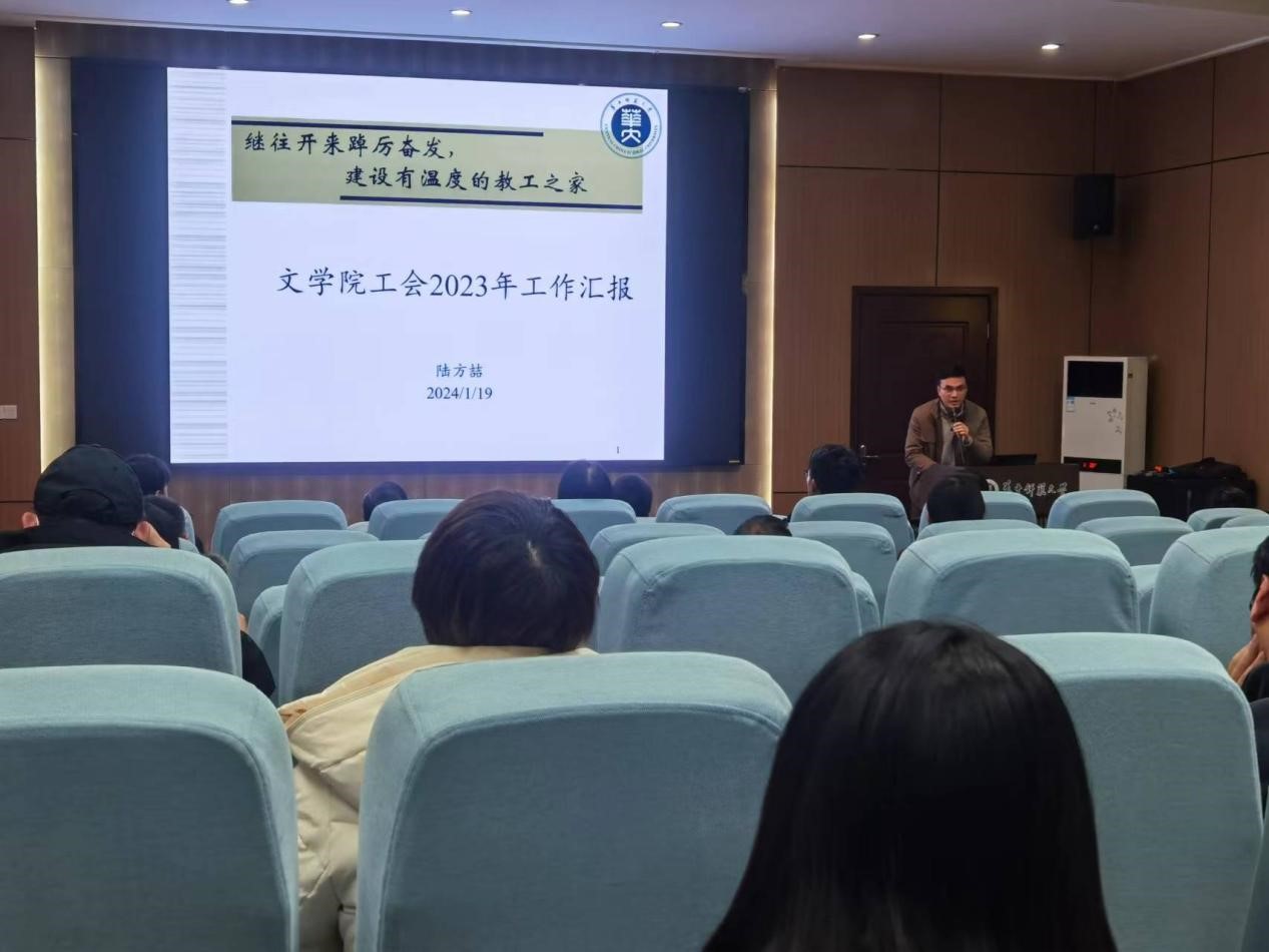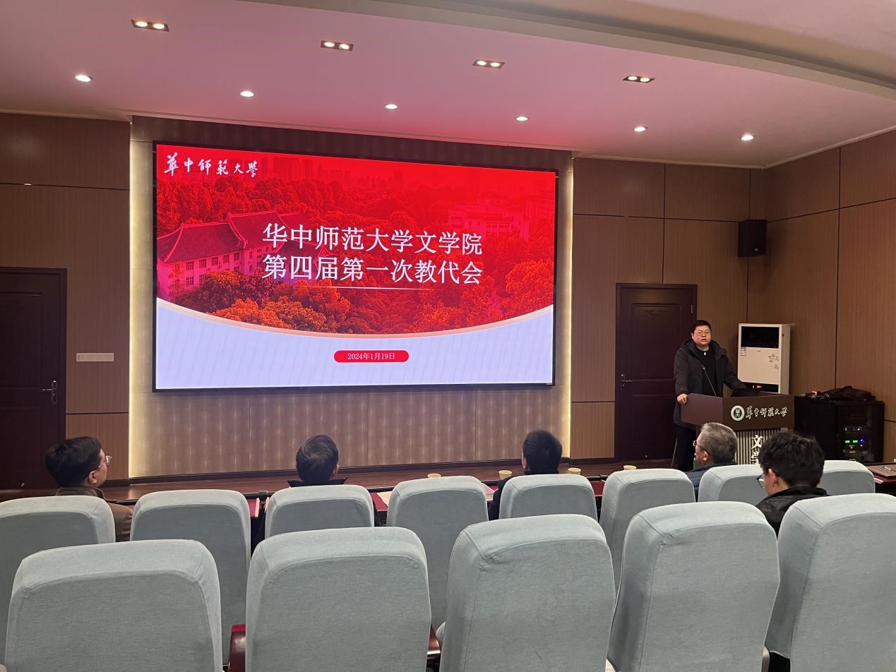(通讯员 王仁宝)2024年1月19日下午,文学院第四届第一次教代会在一楼报告厅成功召开。校工会负责同志,文学院和语言所教职工代表参加了本次教代会,会议由文学院党委副书记李红雷主持。