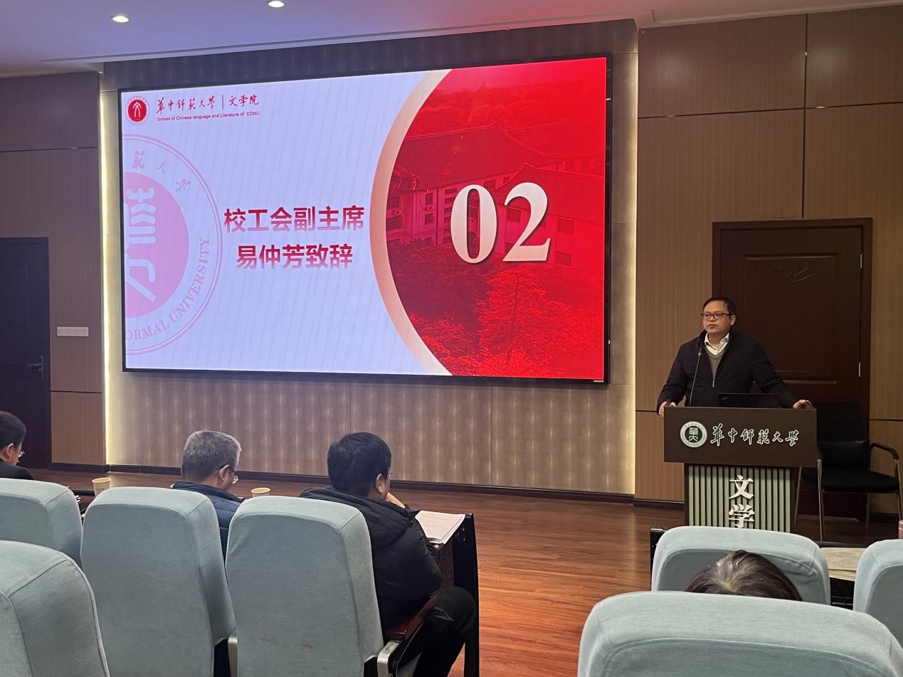 首先,校工会副主席易仲芳同志致辞。他代表校工会,对文学院胜利召开本次教代会表示热烈的祝贺。易主席在致辞中,对文学院党委高度重视、大力支持学院工会工作表示赞赏,他充分肯定了文学院过去一年在办学成果、工会工作等方面取得的优异成绩,并从党的领导、民主管理、自身建设、教代会主题等方面对文学院工会工作提出希望和建议。