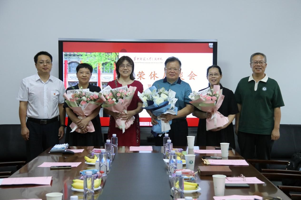 文学院为退休教师准备了荣休纪念品,青年教师代表为他们献上鲜花。张舜表示,纪念勋章是学院为退休教师们精心准备的礼物。退休教师们收下礼物后激动地分享了自己的感言。赵琼表达了对学院的感谢,表示20年教学工作中的付出是值得的。她回忆起自己的工作,感谢所有老师的支持,并希冀研究生的工作能越做越好。员怒华称赞文学院是一个温暖的、人文气息浓厚的大家庭,希望文学院能在领导班子的带领下,走向新的辉煌。张邱林认为教书育人是一份富有成就感和魅力的事业,“忠诚党的教育事业,坚守初心,跟上时代,为党育人、为国育才。学无止境,探索不断,这是有意义的人生追求。”杨建同样感谢学院的重视,她用一首七言绝句《四十感怀》表达自己的心情:“从教四十勤于园,如今纵情山水间。难忘素志与梦想,不负秋日不负闲。”