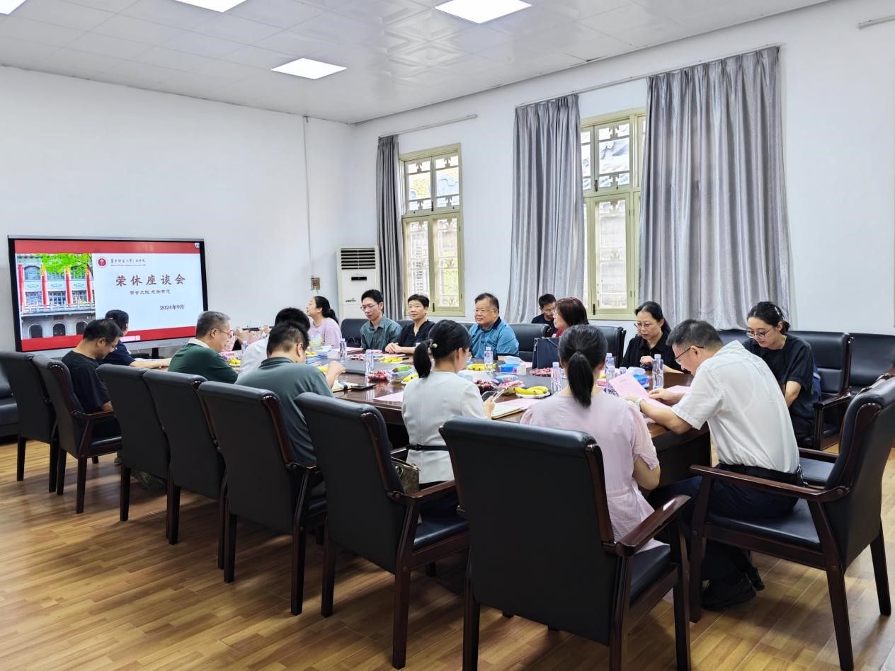 (通讯员 南贺智 付笑语)9月10日,恰逢第四十届教师节,文学院在322会议室举办荣休座谈会。文学院党委书记张舜主持座谈会,院长刘云、党委副书记兼纪委书记李红雷、副院长余一骄、吴述桥、陈蓓,四位学院退休教师赵琼、杨建、员怒华、张邱林以及青年教师代表和行政人员代表参加会议。