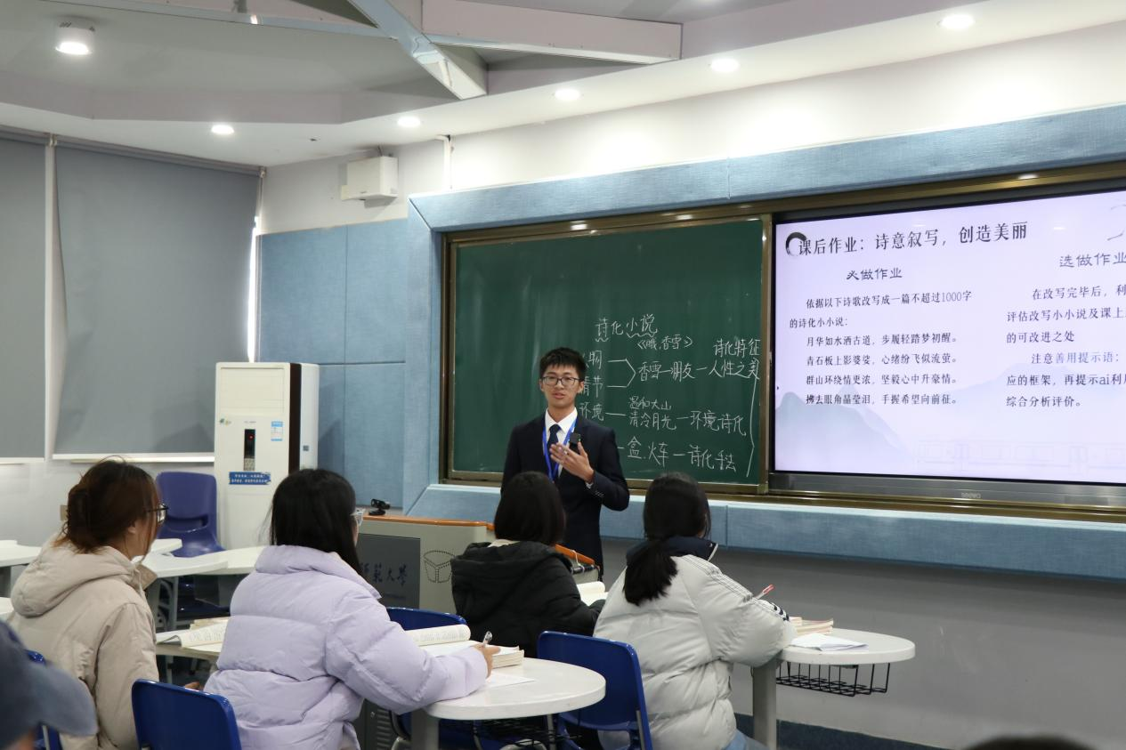 12月7日全天,教学技能交流展示会在我校八号楼举行。比赛包括语文授课和即兴演讲两个部分。来自各高校的专家教授及武汉市重点中学的一线教师担任评委。比赛现场,选手们根据选题精心设计教学内容,采取多种方法实施教学,展示语文教学技能。即兴演讲环节,选手们发散思维、各抒己见,表示要弘扬教育家精神,坚持立德树人,同时也表达了对教育热点问题、语文教学前沿问题的关注。来自汉江师范学院、遵义师范学院、黔南民族师范学院等高校的60多位师生及我院200多名师范生也观摩了比赛。