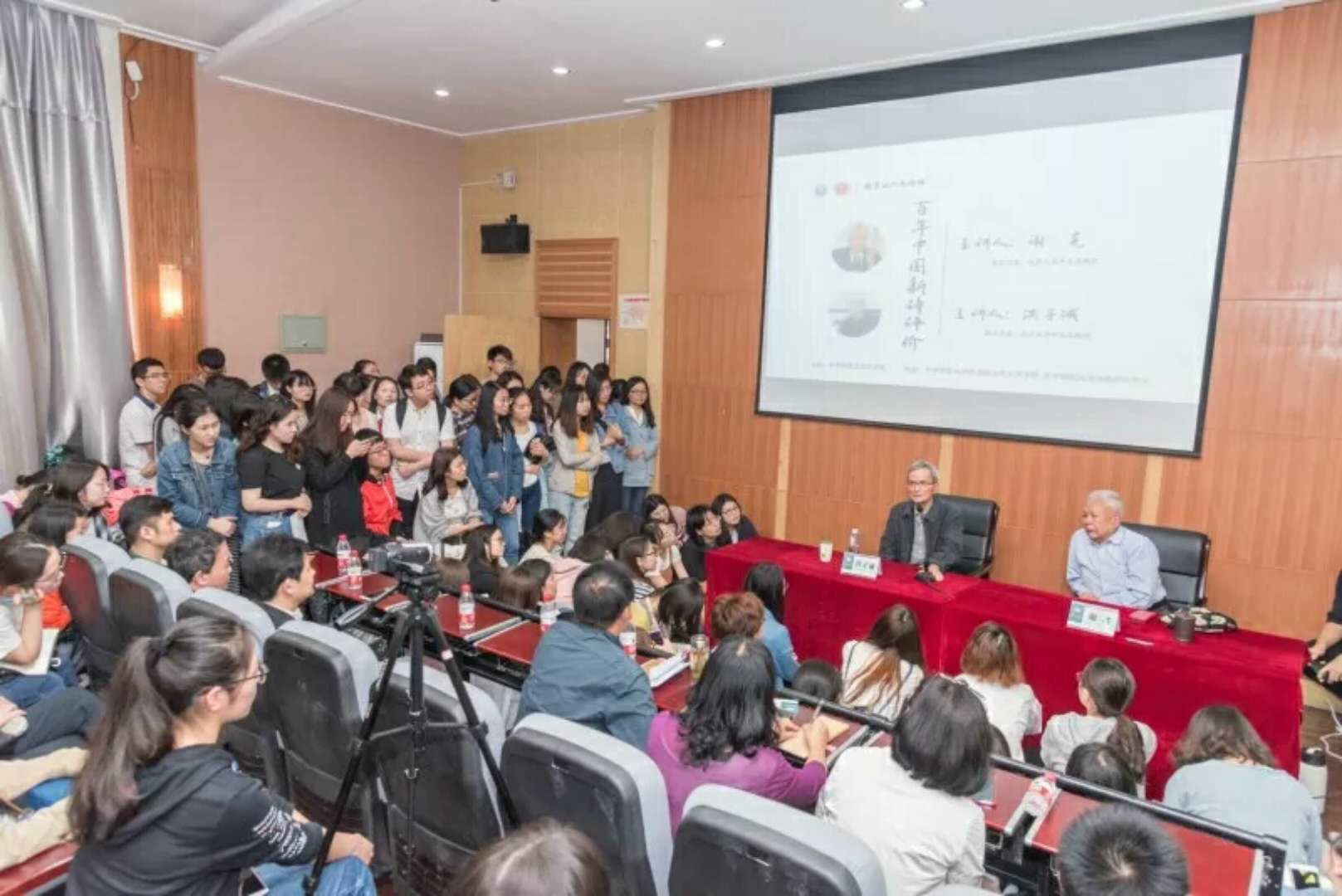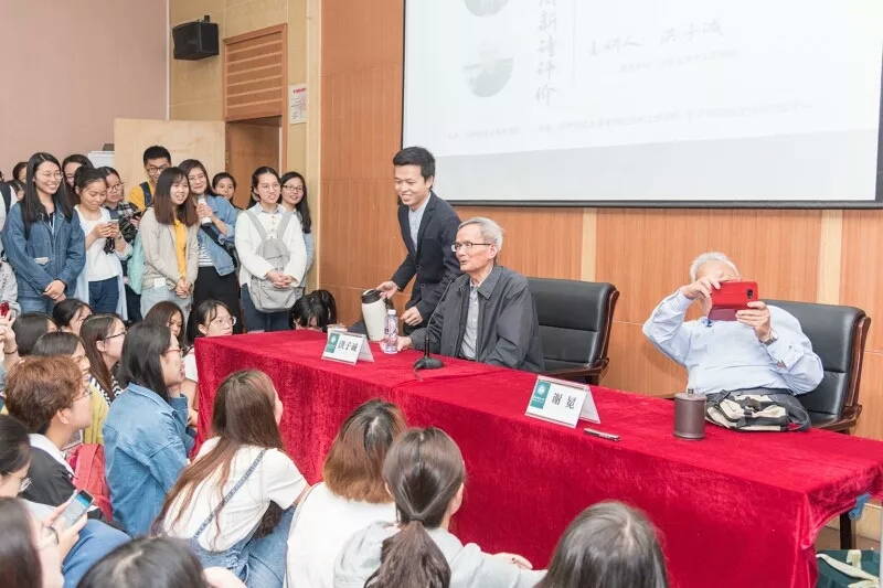 华大在线讯(见习记者 郝文 肖遥)4月27日,中国当代文学史研究专家、北京大学中文系教授谢冕、洪子诚做客文学院一楼报告厅,开展了“百年中国新诗评价”的专题讲座。两位教授梳理了“五四”至今一百多年间诗歌的发展史,指出“一代人写一代诗”,而百年新诗的灵魂就是自由。