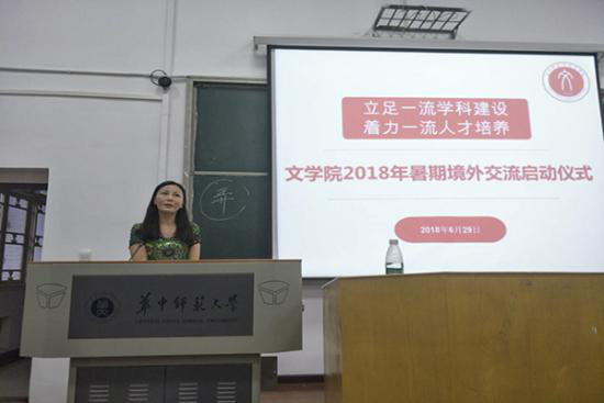 (通讯员:吕江玲 白天伟)6月29日晚,由华中师范大学文学院推出的暑期境外交流实践团队启动仪式在文学院2201举行。华中师范大学文学院党委书记何小红及各交流团带队老师出席了本次启动仪式。仪式由白天伟老师主持。现场,各位老师们对即将外出交流学习的同学们表示了亲切的问候,并在安全等重大问题上反复强调,为顺利开展此次暑假之行做好前期准备工作。