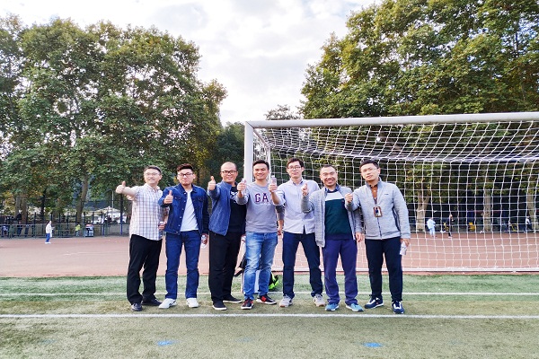 比赛开始前,各个学院陆续抽号,文学院抽中15号。比赛按照抽号顺序开展,文学院参赛队有充足的的时间进行赛前准备。8点半左右,老师们在球场的空地上用矿泉水瓶搭建了几个简易的球门,开始了轻松愉快的练习。经过一个半小时的练习,老师们都在欢乐而有序的节奏中,熟练地掌握了射门技巧。