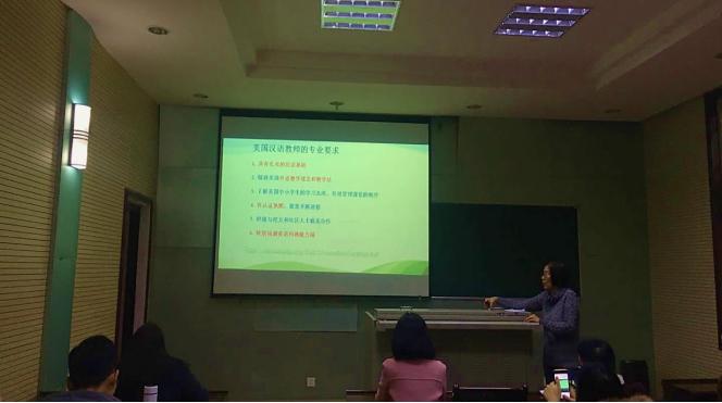 22日上午,刘老师报告了美国汉语教师师资培训情况。刘老师谈到,虽然汉语作为第二语言教学在美国的起步远远晚于法语、西班牙语、德语等传统的欧洲语言,但现在美国对于汉语的重视程度有渐渐赶超这些老牌外语的趋势。她详细地介绍了成为美国合格汉语教师的途径及美国汉语教师的专业要求。