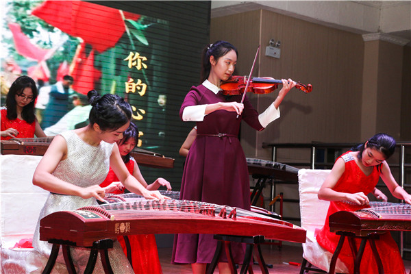 首先开始的是由李哲立老师和刘茜玉同学带来的筝与打击乐《大漠行》。李哲立的古筝弹奏与刘茜玉同学的非洲鼓打击乐配合默契,生动展现了大漠的雄浑壮阔之美。由陈天麒、吴伦同学表演的相声《学聋哑》为全场带去了欢乐。朗诵《华夏千年,赤心永随》融合了诗歌、书画等传统元素,向祖国告白,优美的诗词、华美的汉服与遒劲有力的书法作品相互交融,彰显传统文化的魅力。文院新生们带来的节目也是晚会的一大看点,歌曲《琵琶行》将诗篇以歌唱的形式演绎出来,同时增加了戏曲唱腔,而歌舞《中国龙》则将鼓乐与舞藏族锅庄结合,充分展现了文院新力量的才气。