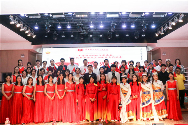 (通讯员 刘忠帆 蒋慧芳 程月 )10月7日晚,文学院2019级迎新晚会暨庆祝新中国成立70周年文艺晚会在大学生活动中心5楼举行,本次活动由华中师范大学文学院团委学生会主办,团委学生会文艺部承办。党委书记朱庆海,党委副书记秦伟,党委副书记徐福刚,文学院副院长李遇春,新生班主任代表刘云飞,团委书记、19级辅导员李哲立,团委副书记、19级辅导员刘汉骄,团委、学生会主席罗婧,副主席张宏宇,八位新生班级朋辈导学出席此次活动。