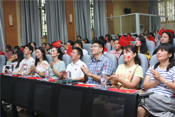 文学院已逾百年办学历史中,曾涌现出恽代英、光未然等多位杰出院友,具有良好的爱国传统。文院充分利用丰富爱国文化资源,通过动员会、文艺晚会等多样形式,团日活动、党日活动等多元平台,推进主题教育,传承红色基因与爱国精神。从主题教育动员大会的召开到师生集中观看国庆盛大庆祝活动,从2018级“辉煌历程七十载,初心依旧话时代”特别团日活动到再到2019级“情定桂子,心系阿中”迎新晚会暨庆祝新中国成立70周年文艺晚会,文学院全过程多样化地突出了爱国主义的主题,让爱国主义主题教育覆盖到全院每一位师生。
