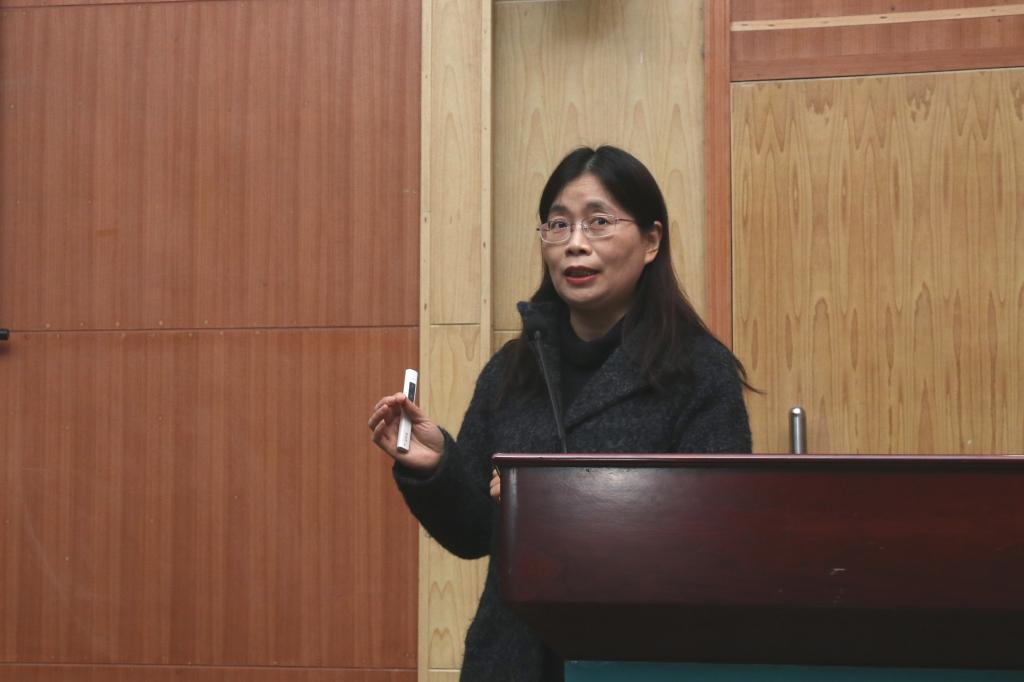 首先,她从国家政策方面出发,说明了国家对教师教育的要求,其中提到了“师范类专业认证标准”,并指出其所具有的重要现实意义,鼓励高校各学科专业朝着该方向发展。随后,在学校人才培养方面,王洪涌指出要遵循“一践行三学会”的标准,即践行师德、学会育人、学会教学、学会发展。同时,她强调树立“学生中心”的教育观和“产出导向”的培养观,力求突破传统课堂以老师为中心的教学模式,推动课堂教学革命。针对“产出导向”这一概念,王洪涌作出了解释,即从反向出发,根据社会发展要求科学制定人才培养目标,完善人才培养方案,优化课程设置,更新教学内容,从而推进教育质量不断提升。紧接着,在介绍我校人才培养计划时,她认为要以北京师范大学和华东师范大学为导向标,借鉴他们的人才培养方案,以此找准我校发展的方向。
