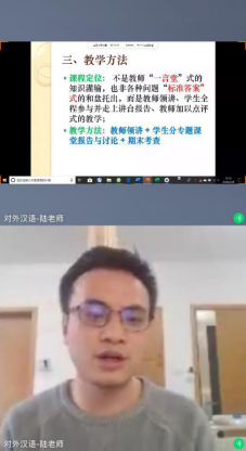 陆方喆老师本学期有汉语课堂教学理论与实践”、“中华文化技能两门本科生课程,教学任务较重。住院期间,陆老师始终活跃在备课教学群中,与教研室共同磨课;康复后还在留观病房内直播上网课,院内同事体谅他的情况,提出帮忙代课,他也一并谢绝了。当被问到坚持上课的原因时,陆老师说道:“首先,治疗期间我并没有感觉到特别不舒服,我觉得我的身体状况允许我继续上课,自己有能力也有责任完成这项工作。同时,我也想给自己积极的心理暗示,让我觉得自己不是病人,已经恢复健康。另外,我很愿意给学生们上课,教授专业知识、交流关于疫情的感受都令我快乐,隔离期间漫长的时光也变得有意义了。”陆老师的学生们在了解老师的经历后也深受感动,学习热情高涨,“我的学生们觉得,我在这么艰难的情况下给他们上课,他们更有理由认真听讲。我也安慰他们,新冠肺炎没有那么可怕,让他们在家不要恐慌,做好防护。鼓励他们把主要精力放在专业学习上,在家期间停课不停学。我想通过我的现身说法让学生们更自觉、更有动力地学习。”