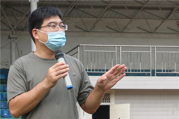随后,军事教官訾连长就新生军训作了动员讲话。他要求学生严格遵守指示,认真听讲并及时更正训练中的不足与错误。同时,他强调军训队列训练是一个严肃而又神圣的活动,全体新生应该克服身体以及天气的困难,在积累中成长,在历练中收获更好的自己。最后,他也期待学生与教官们友好度过短暂的十四天军训时光,并争取在考核中取得好成绩。