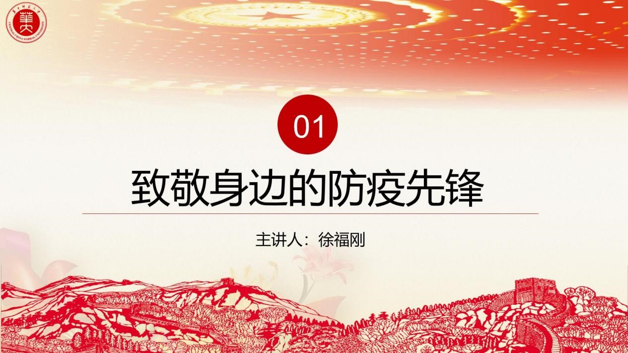 活动通过腾讯会议于7月15日下午3时开展,以“致敬防疫先锋,共话疫情防控”为主题,主要包括三个部分:致敬身边的防疫先锋、常态下的疫情防控以及师生共话疫情防控正能量。