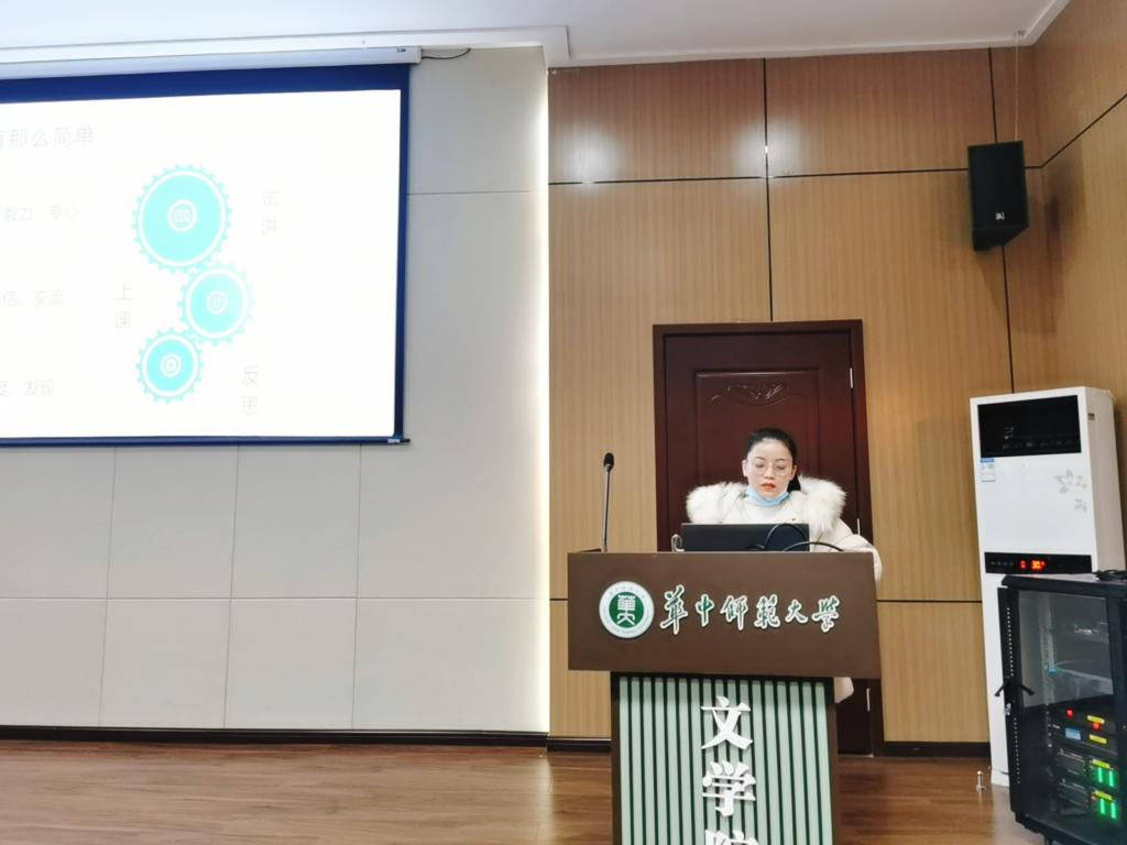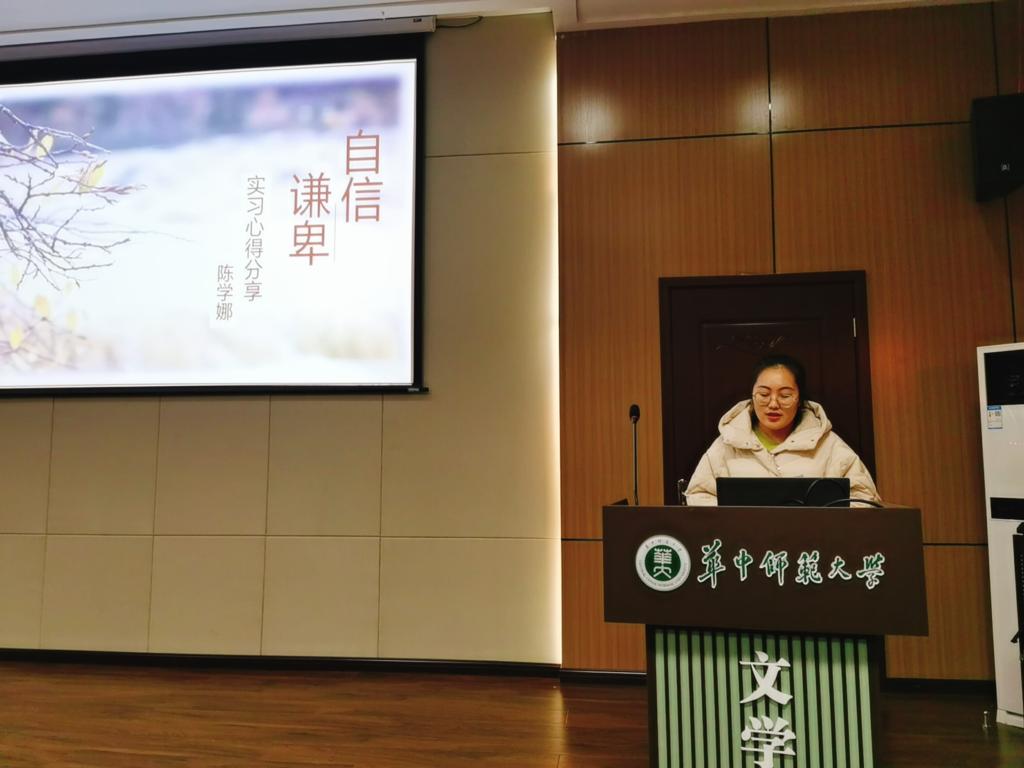接着,在本次实习中表现优异的四位同学代表小组或个人上台分享实习经验。其中,海南中学实习小组代表王彦儒将小组工作经验总结为三点——及时整理听课记录、认真批改作业以及关注教学设计能力提升。实习优秀个人陈学娜则以“自信”和“谦卑”作为个人学习、工作的理念,并以此为基础回顾了自己实习过程中深受感触的情景和话语。罗媚和张美瑛同学的分享也让同学们收获颇丰。各位优秀代表的分享言简意赅,也让与会师生心生触动。