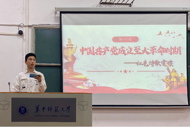 (通讯员:镇熙宇 张艺卉)为庆祝中国共产党成立100周年,引导青年学子在红色经典诗歌中重温党的百年峥嵘岁月,汲取奋进力量,5月下旬,在中国现当代文学及中国新文学学会联合党支部书记李遇春老师的指导下,文学院2019级中国语言文学类团总支部学生会、文学院第65期入党积极分子培训班第6组联合举办的“青春心向党,雅言诵华章”红色经典诗歌赏读活动在文学院2201教室顺利开展。文学院2019级辅导员陈若千出席了本次活动。