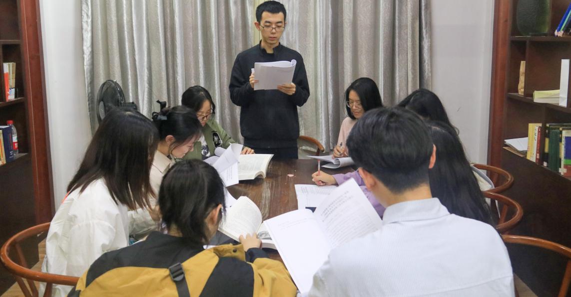 29日晚,学员们按时在文学院一楼报告厅集合完毕,并由各组组长带领学习培训班汇编的学习资料。学员们认真投入,在学习材料上勾画重点、记录笔记。