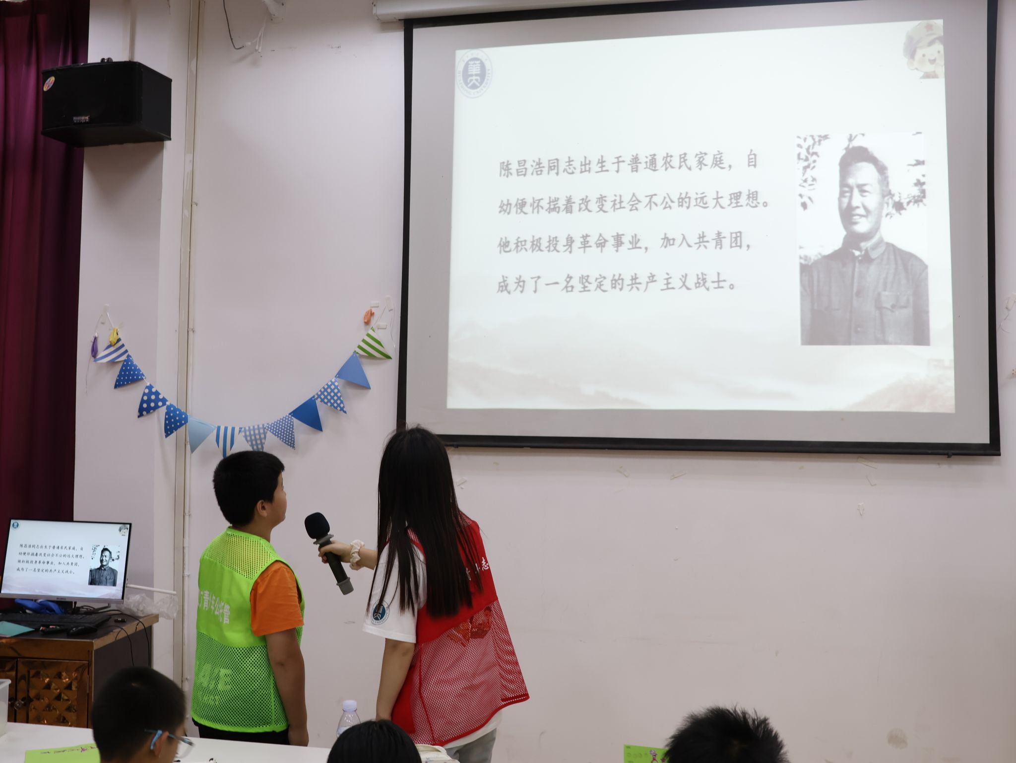 在蔡甸区暑假“爱心托管班”中,文心服务队志愿者侯奕蕾为青少年带来了一节爱国主义教育课。课堂上,她以“重走长征路”为主线,带领孩子们挖掘长征时期的重要史实与英雄人物故事,同时融入了蔡甸籍革命先辈陈昌浩的生平事迹,让学生在身边的红色印记中,真切感受到红色革命文化的深厚底蕴与精神力量。