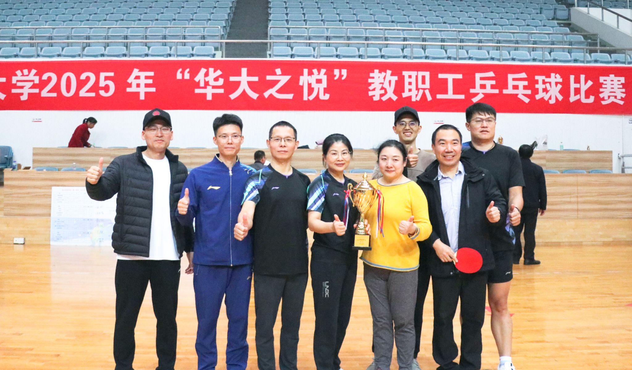 文学院讯(通讯员 蓝思思)10月24日至25日,2025年学校“华大之悦”教职工乒乓球比赛于佑铭体育馆举行,全校单位分为甲乙两组比赛,文学院代表队参加乙组比赛,以混合团体全胜战绩斩获冠军。